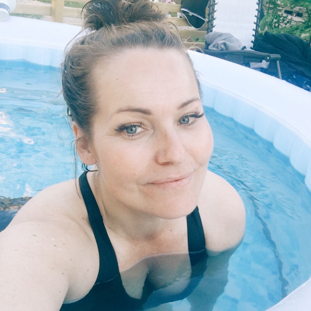 Som vi njöt. Jag låg säkert i en hel timma och bara njöt. Det varma vattnet mot huden, solen som var på väg ned. Trädgårdsdoft och fräsch luft. Milo tjoade runt den första halvtimmen men sen måste han också blivit trött. Han ville ligga nära och mysa. Snacka om skönt för min trötta kropp och huvud. Första halvtimmen handlade mest om att torka bort vatten som stänkt upp i ansiktet…..haha.