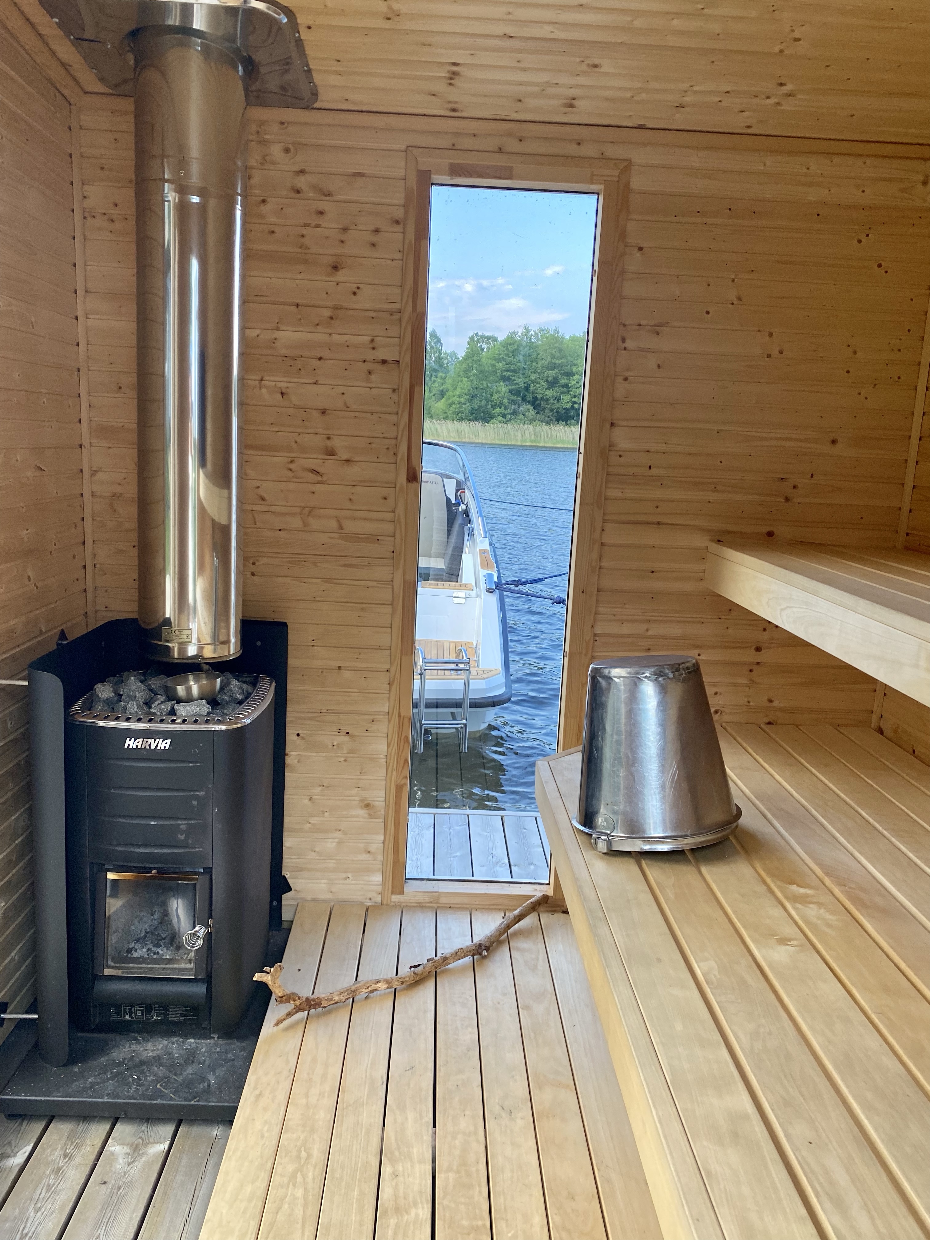 Älskar deras bastu som ligger på en flotte på vattnet. Hur lyxigt att sitta där och kika ut över vattnet?