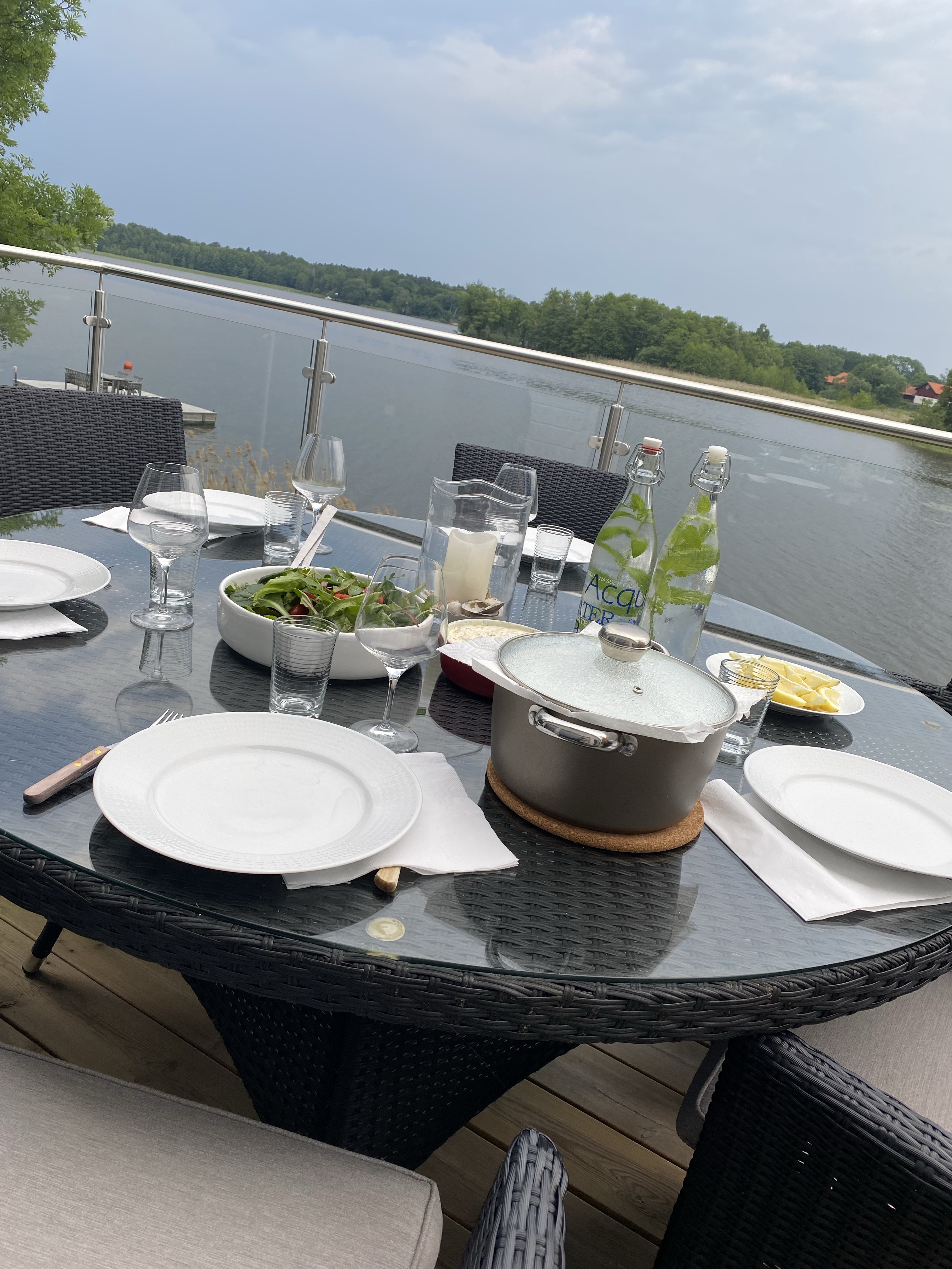 En ljuvlig middag avnjöts sedan på deras terass men färsk stekt gös och massa annat gott. Wow vilken dag och kväll det blev. Helt galet härligt. Lägger detta i lilla minnesbanken när höst och vinter härjar igen.