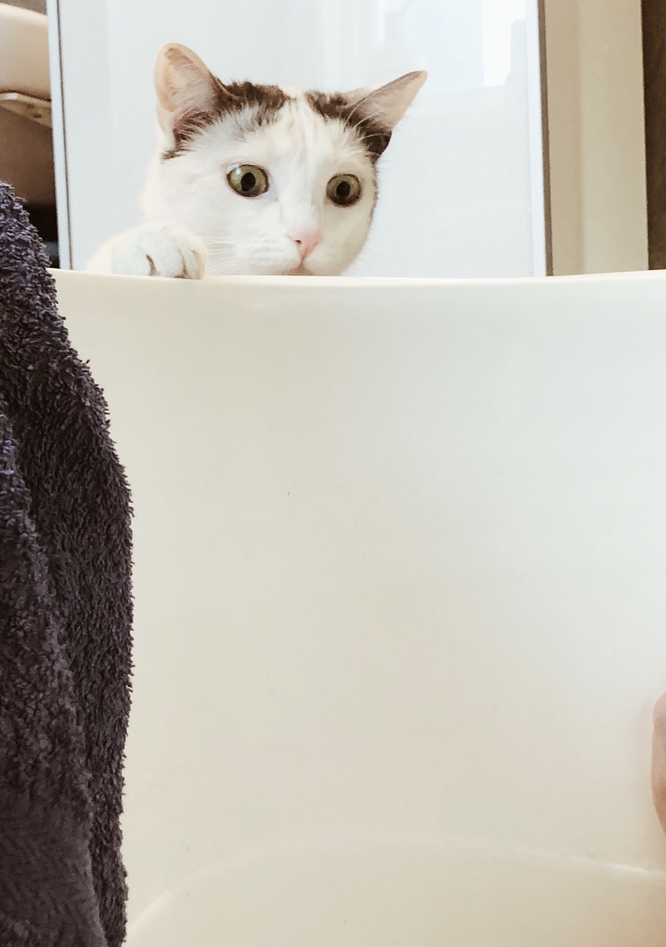 Men hon den här hårbollen är väl rolig. Hon var fram flera gånger och nosade skräckslaget på badkaret. Hon pep och ojade sig över att jag satt i det. Fjantskallen alltså.