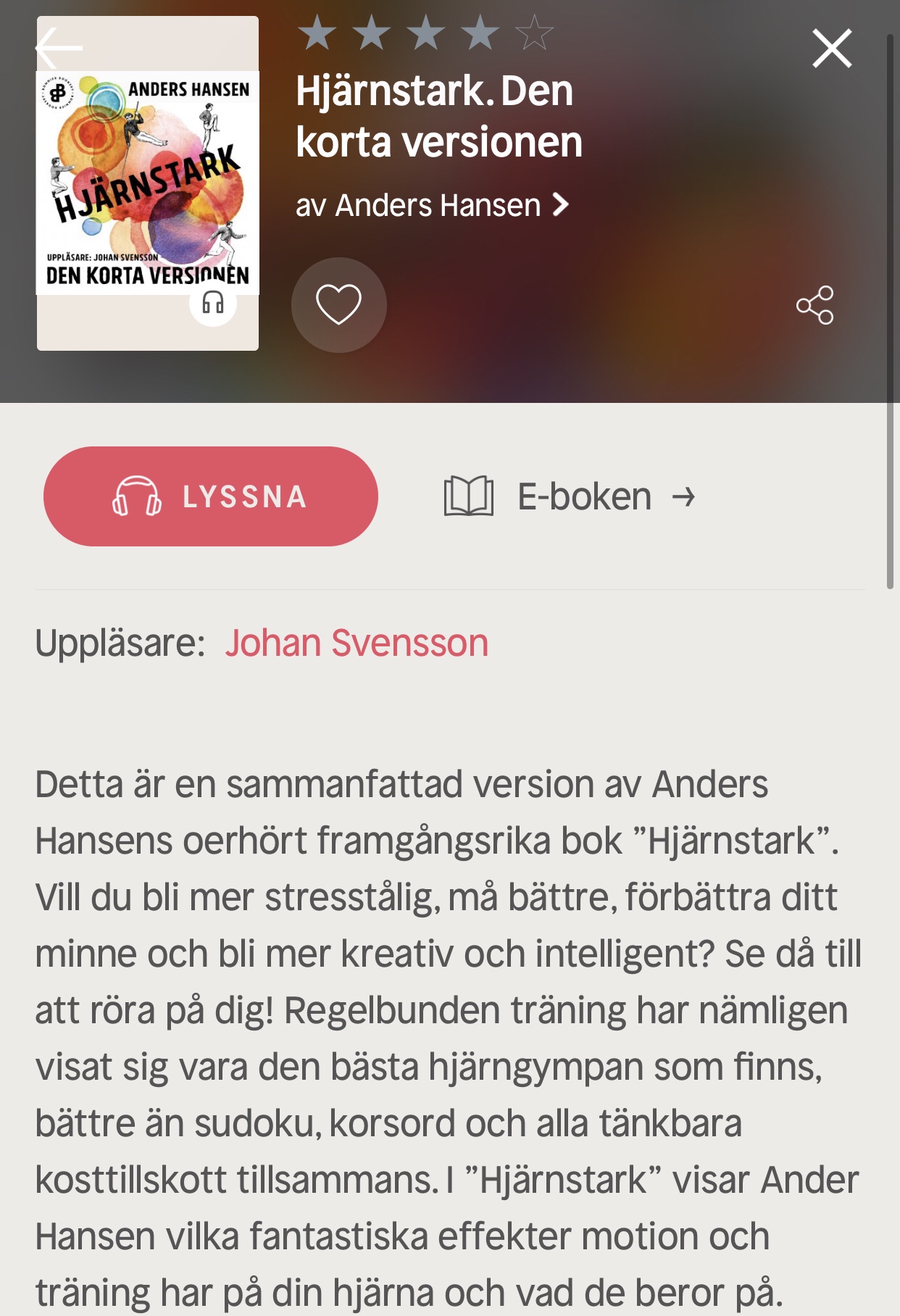 Den här boken lyssnade jag på under några av mina promenader och nu förstår jag varför de där promenaderna är så viktiga och varför de får mig att må bra. Jag kan rekommendera alla människor på hela jorden att läsa/lyssna på den boken. Så mycket som det hjälpt mot både oro, ångest och stress är fasen inte klokt. Den här boken har helt förändrat mitt tankesätt kring promenader som motion för all framtid. Så länge jag kan ska jag gå på mina promenader. Så är det!