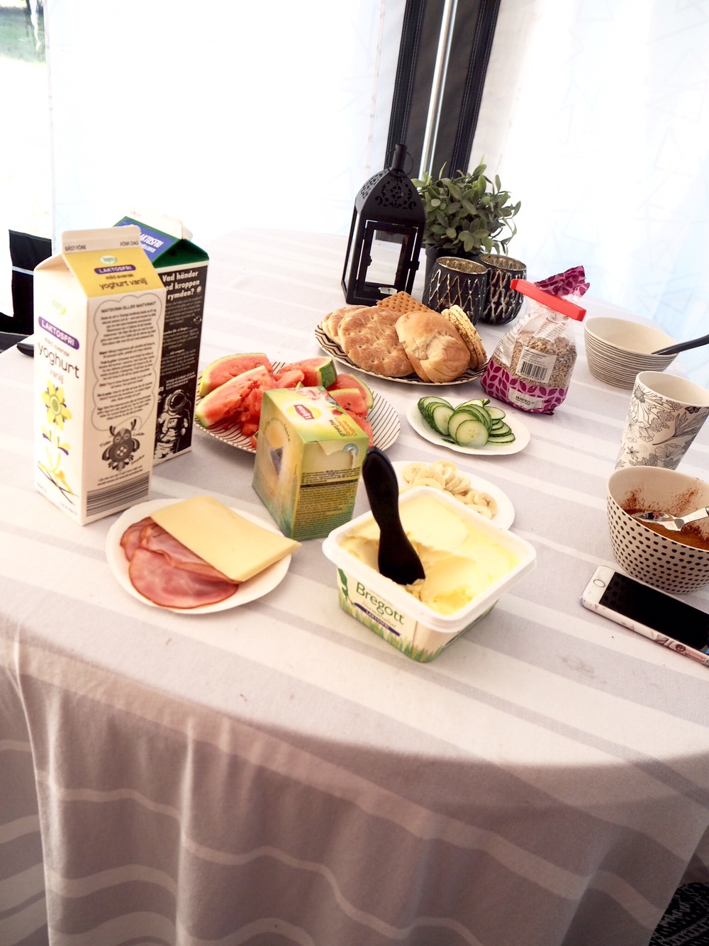 Efter promenad och min ”mindfulness” stund så gick jag till husvagnen och gjorde frukost. Familjen vaknade sen så vi kunde äta ihop.