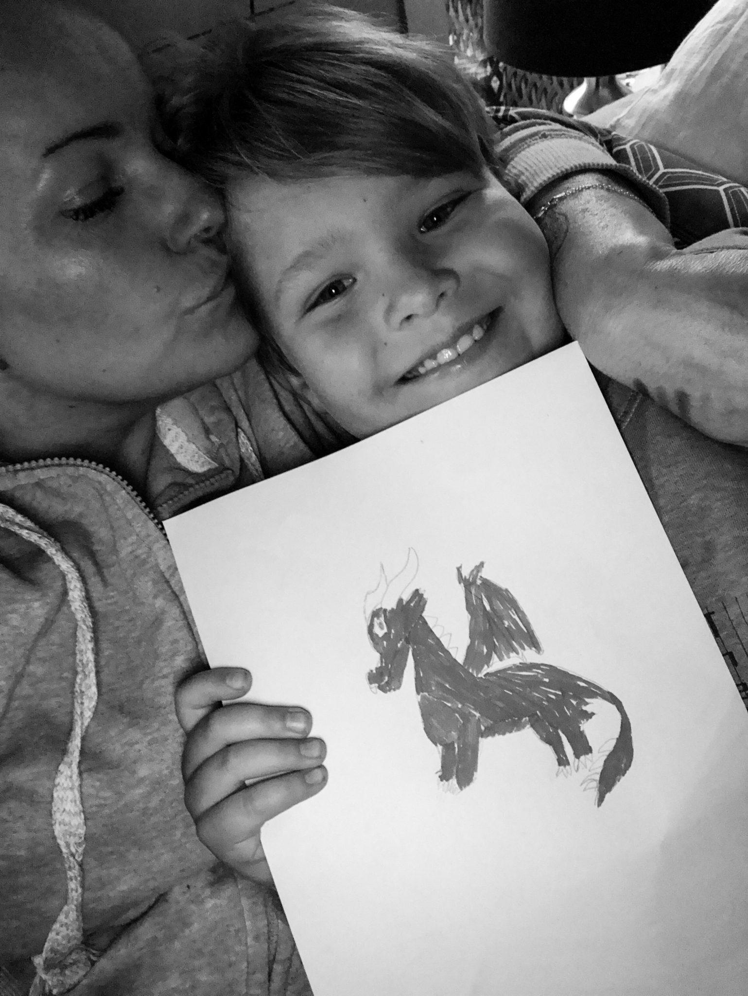 Milo har varit cool hela vägen. Han har ju liksom inte riktigt varit insatt i varför sånt här kollas upp vilket är lika bra. Igår ritade han den här draken på fri hand. Den är så fin! Den får bli symbolen för allt detta…. en kraftfull drake som beskyddat något av det värdefullaste vi har!