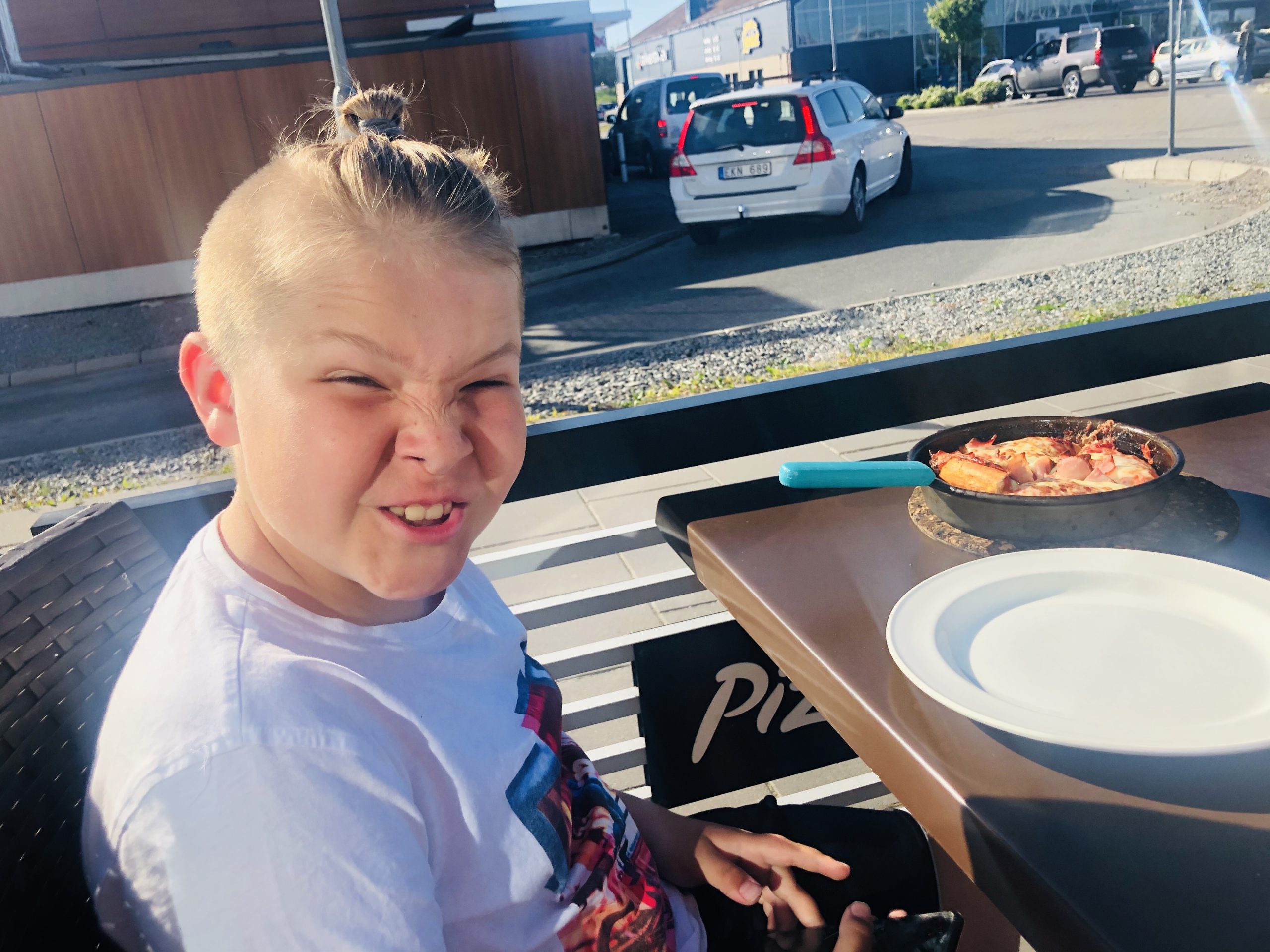 Igår spelade Milo match i Uppsala. Efter matchen hade vi planerat in ett besök på Pizza Hut. Jag testade en vegansk botten med vegansk ”pepperonikorv” och vegansk ost. Så god! Jag rullade ut från uteserveringen. 😂