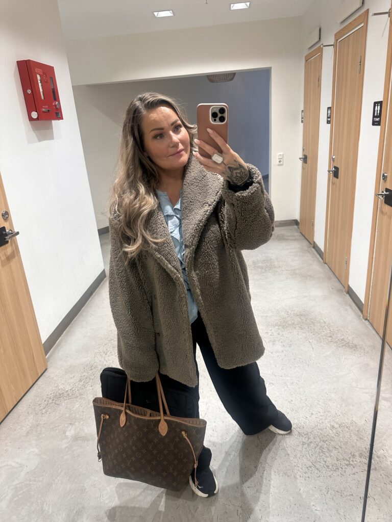 När jag var i Stockholm tidigare i veckan hade jag på mig min nya gosigaste höstjacka i pile. Perfekt när man vill vara både varm och snygg. Under hade jag en denimblus med liten volang i u-ringningen, alltså, jag älskar den och fattar inte hur den kan vara så billig! 😍