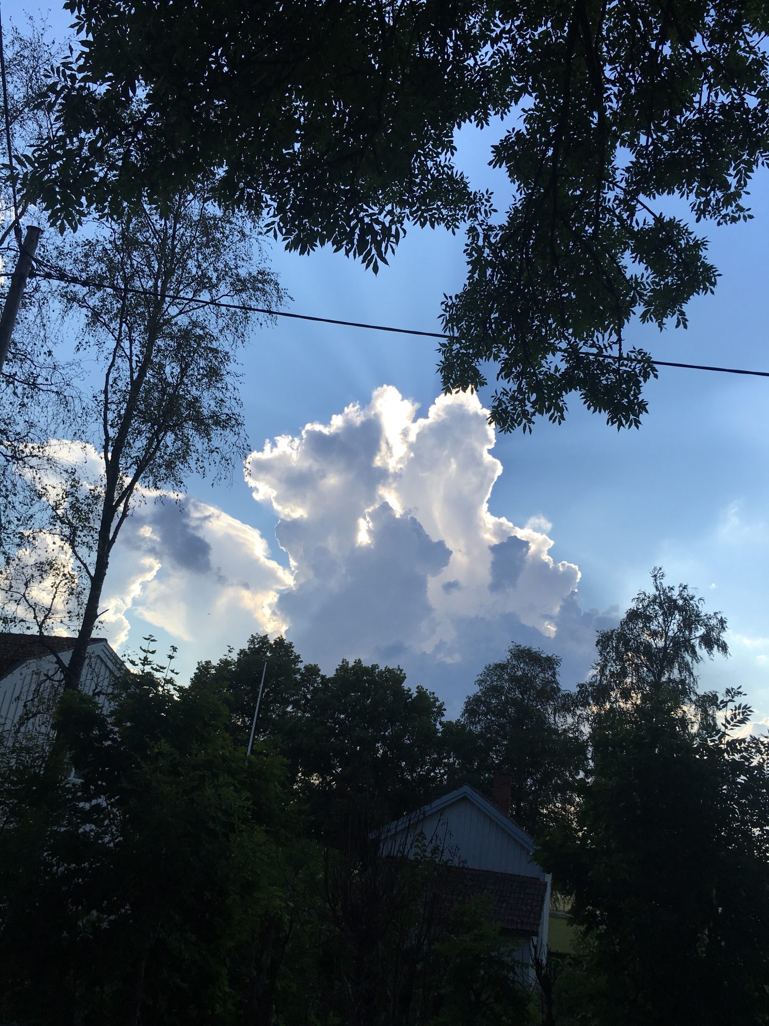 Himlen utanför Vagnhild såg ut såhär idag. Så mäktiga moln på något sätt. Det gick bra med Vagnhild idag. Massor blev fixat men vi behöver fortsätta imorgon så vi blir helt klara.