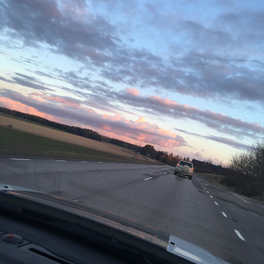 Himlen var såå vacker när vi åkte hem ikväll. Alldeles rosa.
