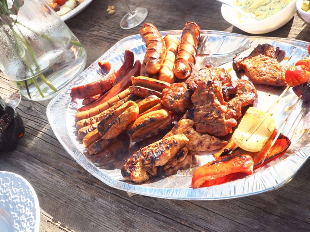 En riktig grillbricka med både kött, kyckling och olika korvar.