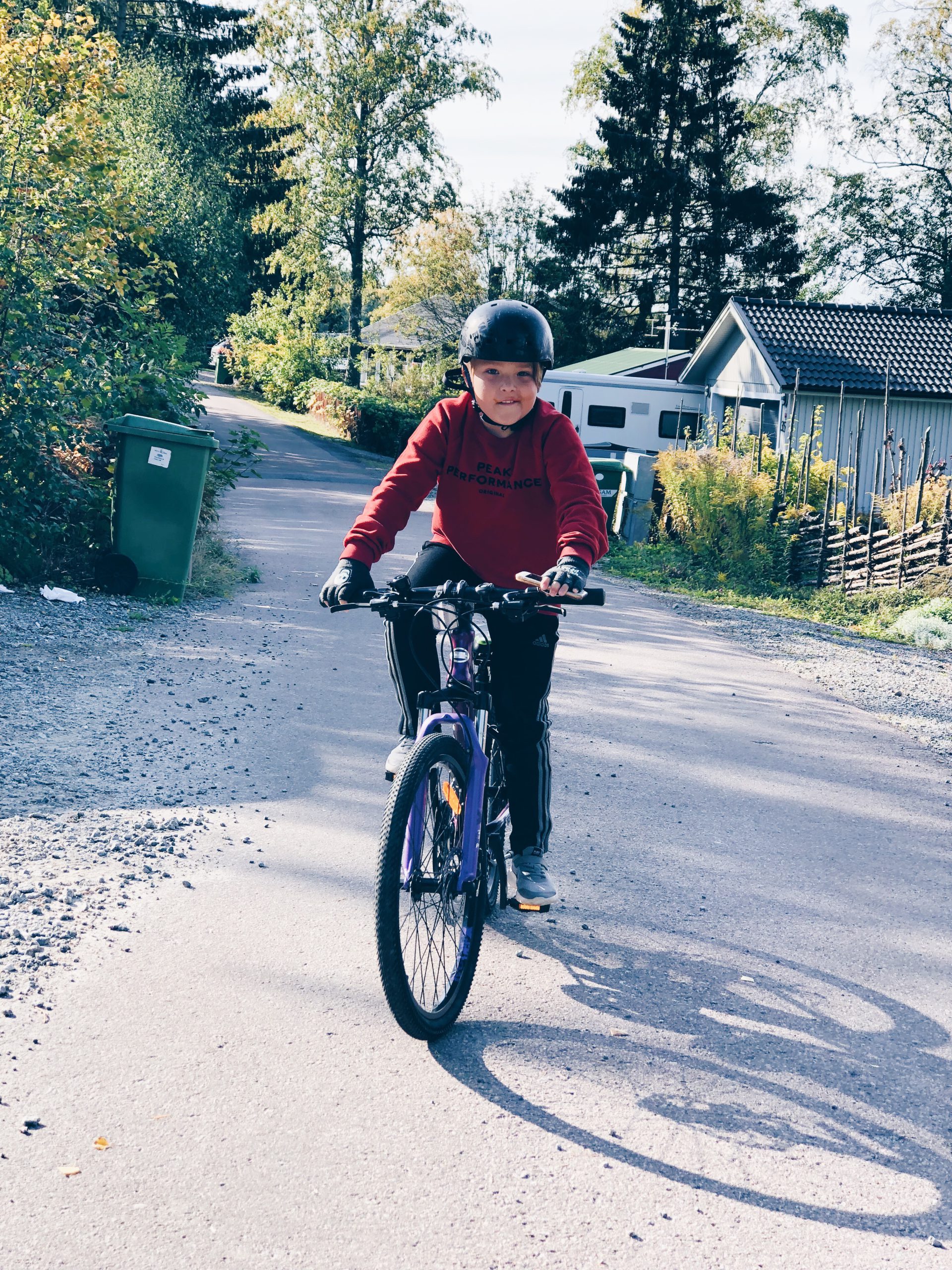 Ja men jag säger bara det, hans glädje i ansiktet som skiner som en sol. ☀️✨ Han bestämde sig som sagt direkt för den här balla lila cykeln. Vi bytte ut sadeln till en lite coolare också så nu är den ”top notch” som han säger. Snacka om att ungar snappar upp ord man säger själv ibland, ja men överallt ifrån. Han snappar upp allt nu, från Youtube, filmer, kompisar, äldre barn…. ja you name it.