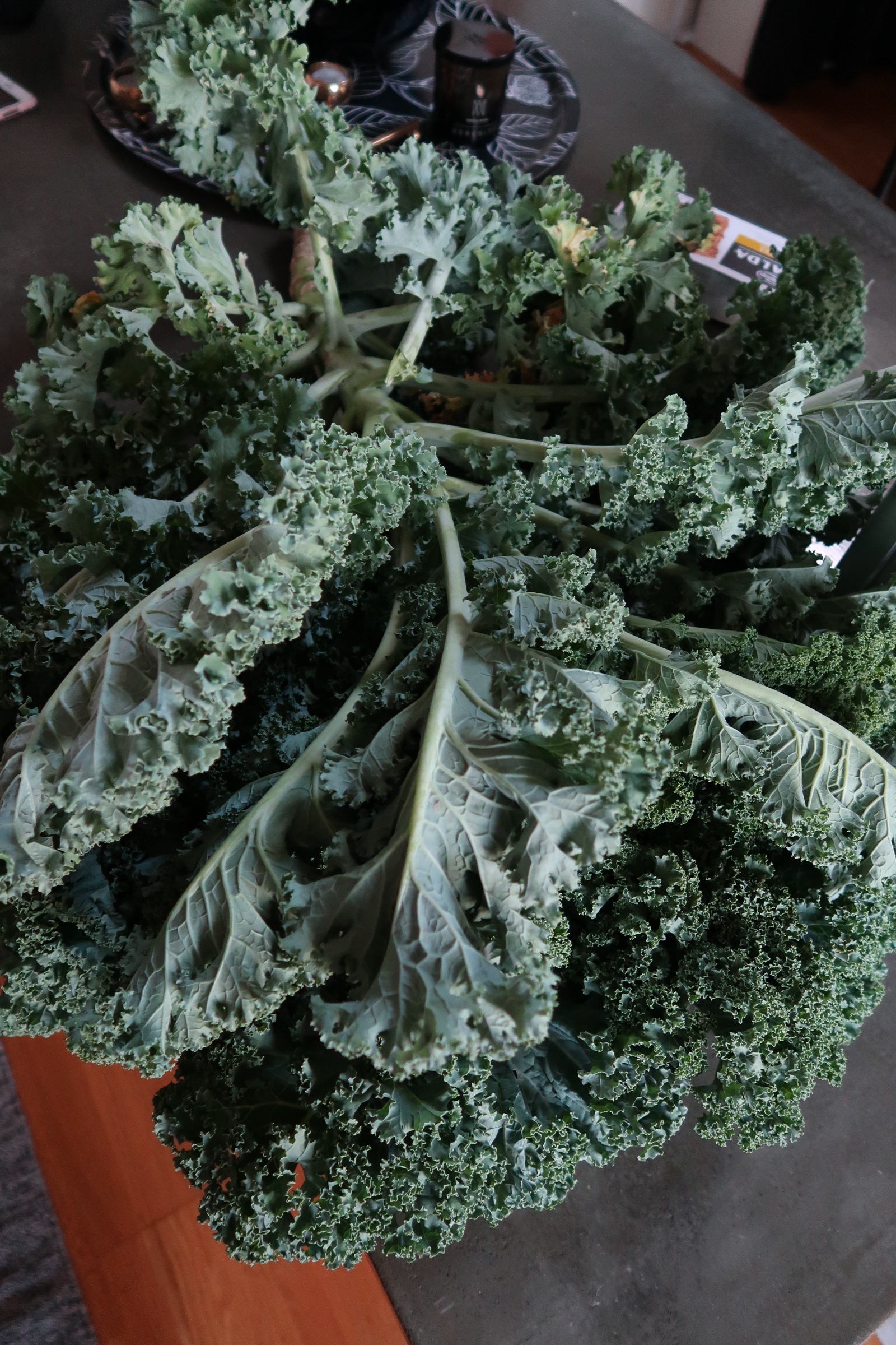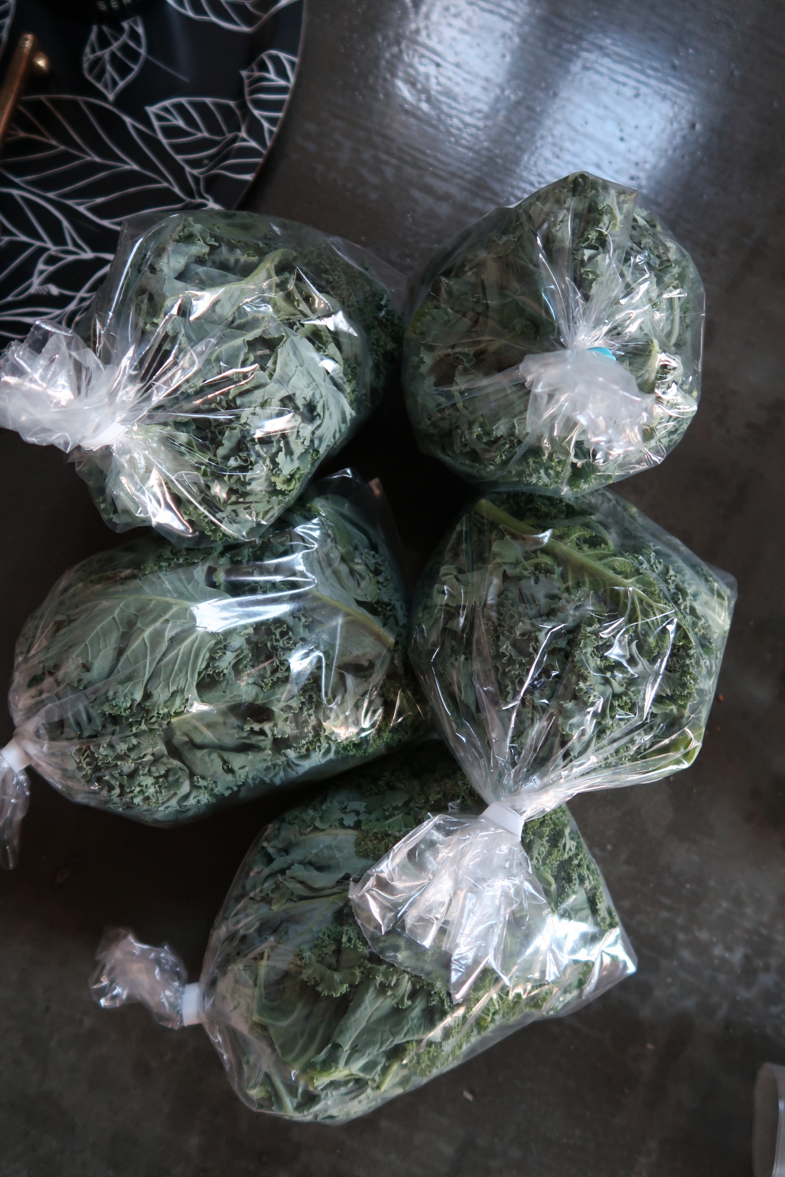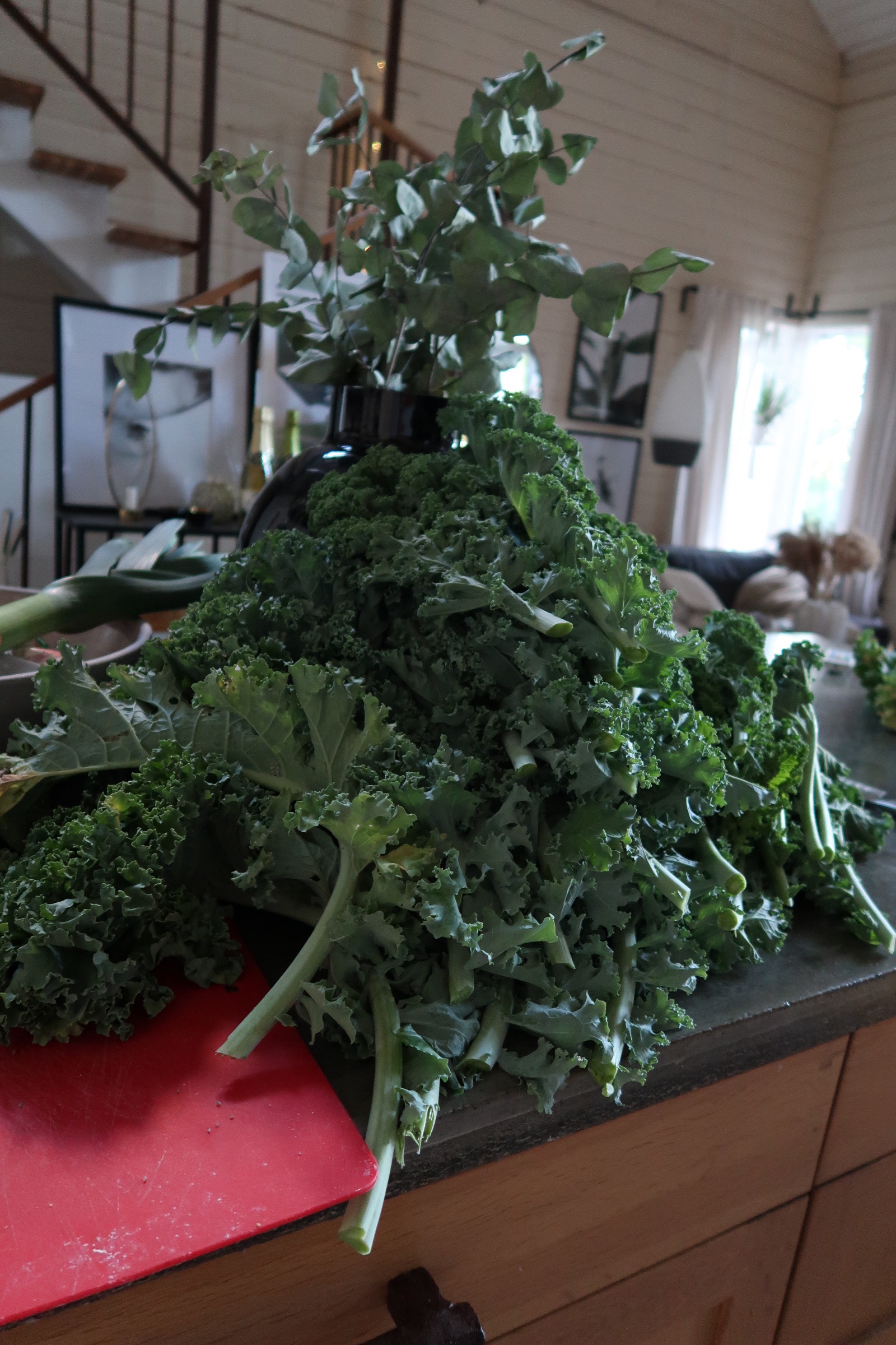 Jag hade fullt sjå hemma att få ordning på grönkålen. Jag ansade den och la i påsar och så fryser jag in. Går utmärkt förstår ni, hur smidigt?