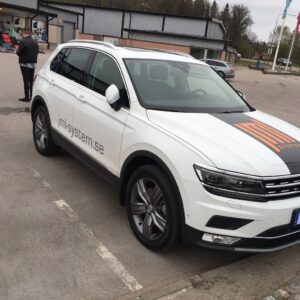 Hörni, idag fick vi vår nya bil. En sprillans ny, jag har ALDRIG under mina 44 år haft en sprojlans ny kärra. Det är Tonys firmabil men som han betalar förmånsvärde på. Så det blir liksom familjens bil. Det är Wolkswagen Tiguan å jag tycker den är såååå fin. Jag fick min vilja igenom om glastak. Hihi…. Så härligt på sommaren, sen blir det väldigt ljust i bilen.