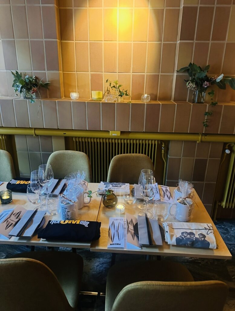 Det var så fint uppdukat och vi alla fick en signerad Niklas Strömstedt T-shirt till bordet. Den här restaurangen är så liten och mysig, och maten… ja det kan vi prata om lite längre ned för herrminjee i gatan så gott det var!