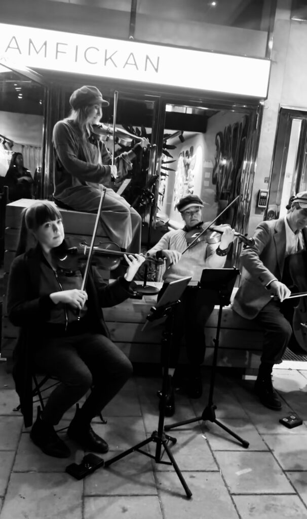 Vid restaurang Framfickan som ligger precis i anslutning till teaterns ingång välkomnades vi av den här kvartetten som satt och spelade Niklas Strömstedt musik utanför. Hur hög mysfaktor?!