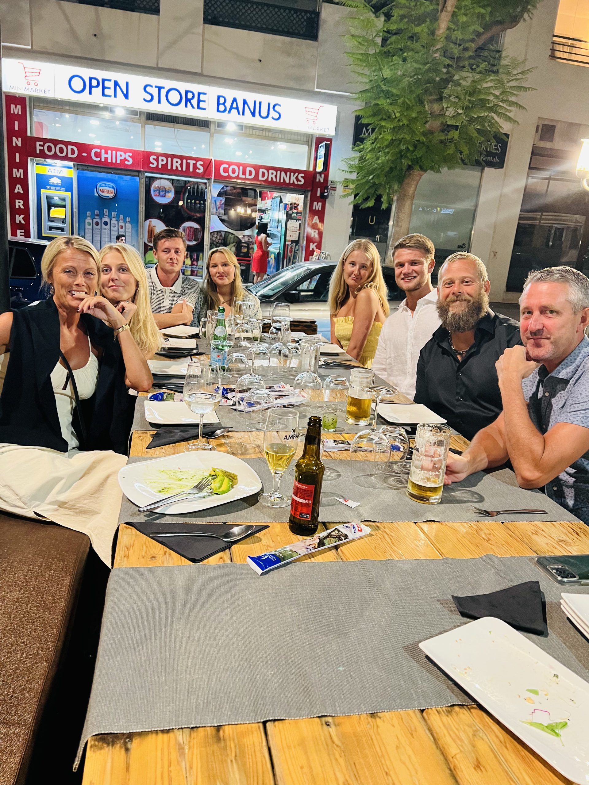 I fredags var vi ute och åt med vårt gäng. Våra vänner från Enköping hade barn på besök så då gick vi ut och åt allihopa. Vi var på La Pasta. Rrrrriktigt gott. Åker du till Puerto Banus nångång så är där. Förrätt blev tomat, fetaost och avocado anrättning. Pesto-flarn till, nej men det var såååå smarrigt. Tony tog Bruschetta, som han nästan alltid gör, det eller toast Skagen. ☺️ Varmrätt blev vegetarisk risotto för min del. Såå god! Det där osttäcket gjorde ju inte direkt ont att äta.