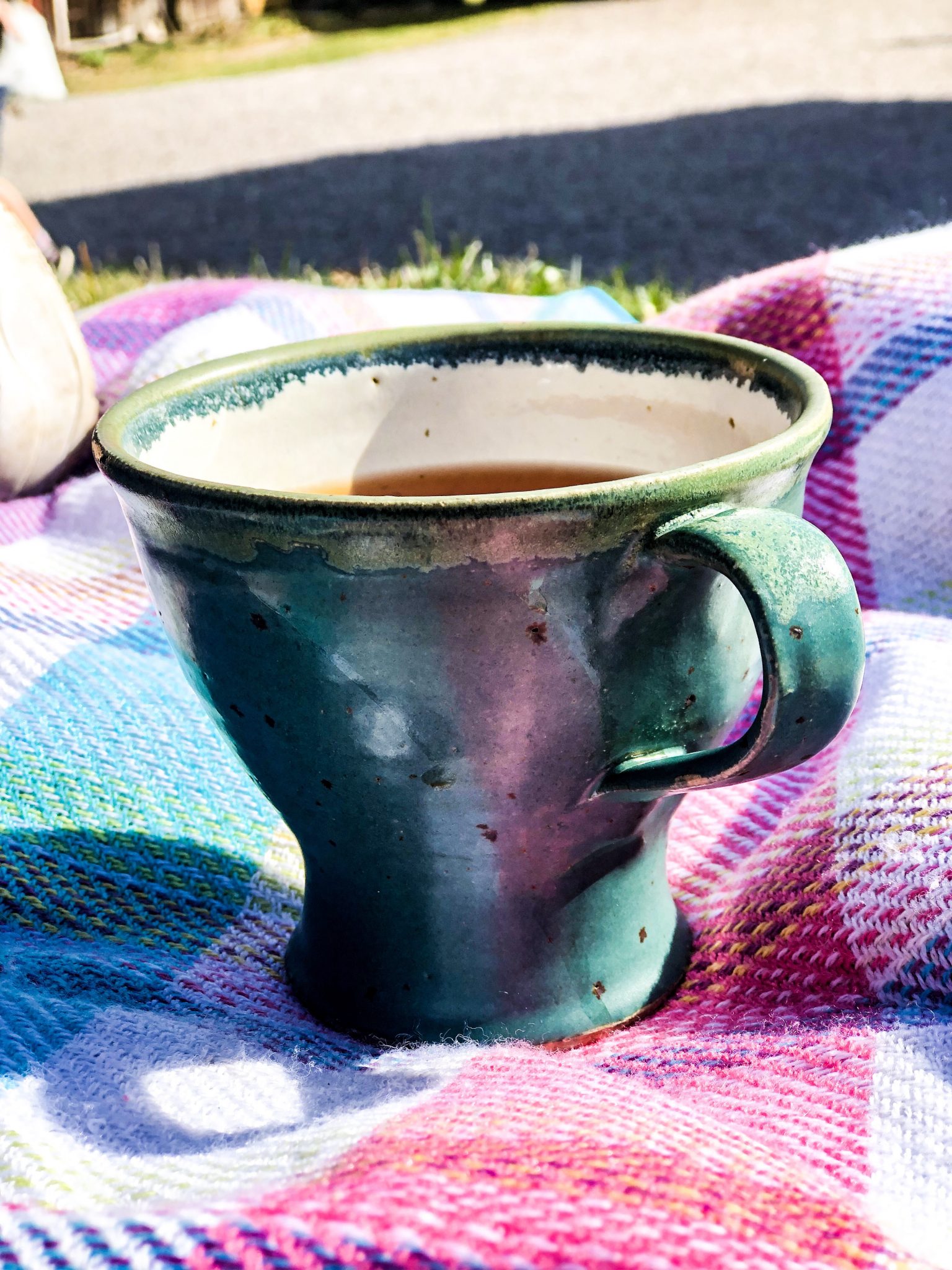 Det blev en fika på picknickfiltar ute på gräsmattan då uteserveringen var full. Ljuvligt att bara sitta där och titta på folk. Finns mycket att titta på runtom också.