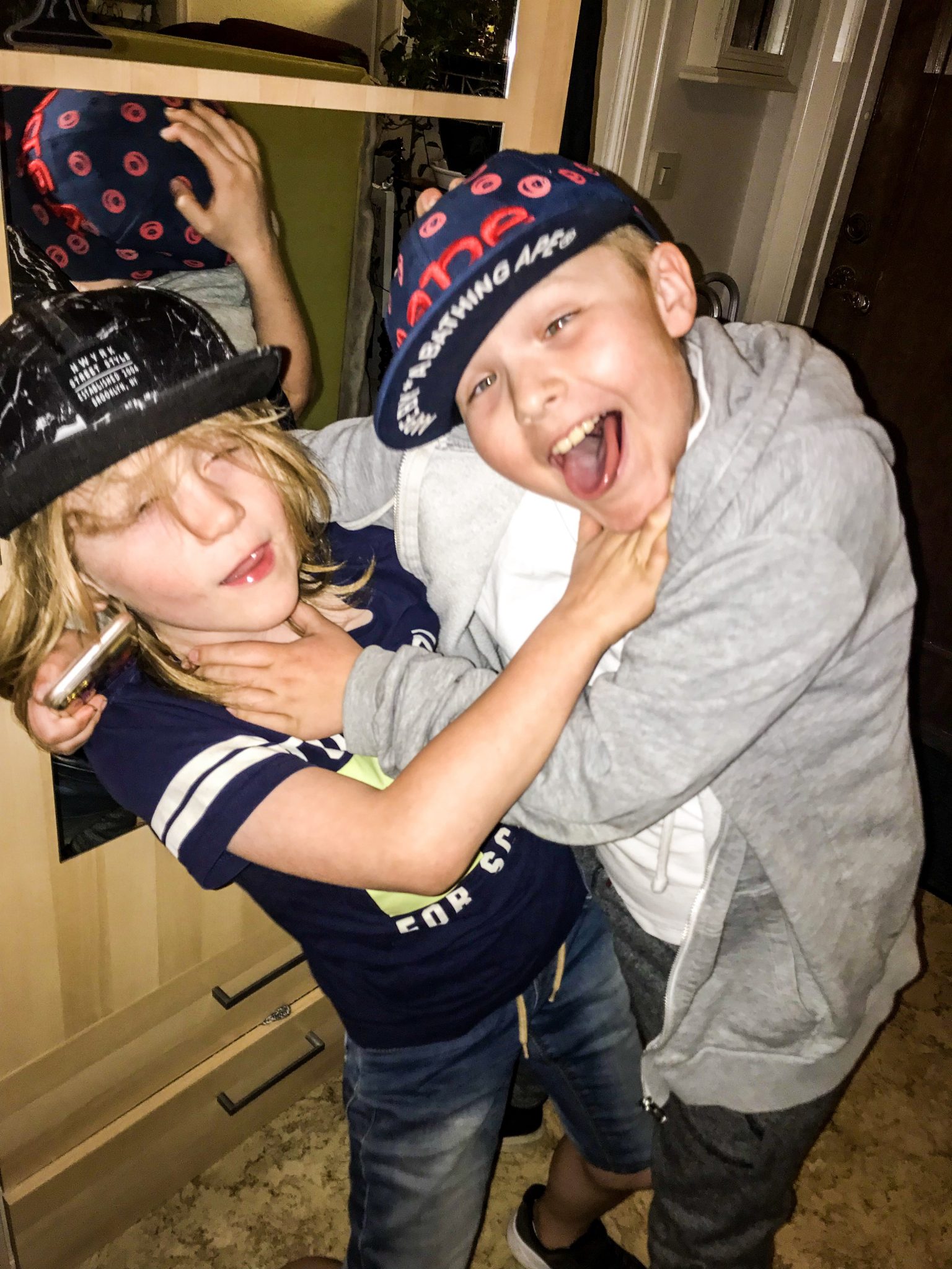 Kusinerna hamnade också på bild när de skojade innan vi åkte hemåt igår kväll.
