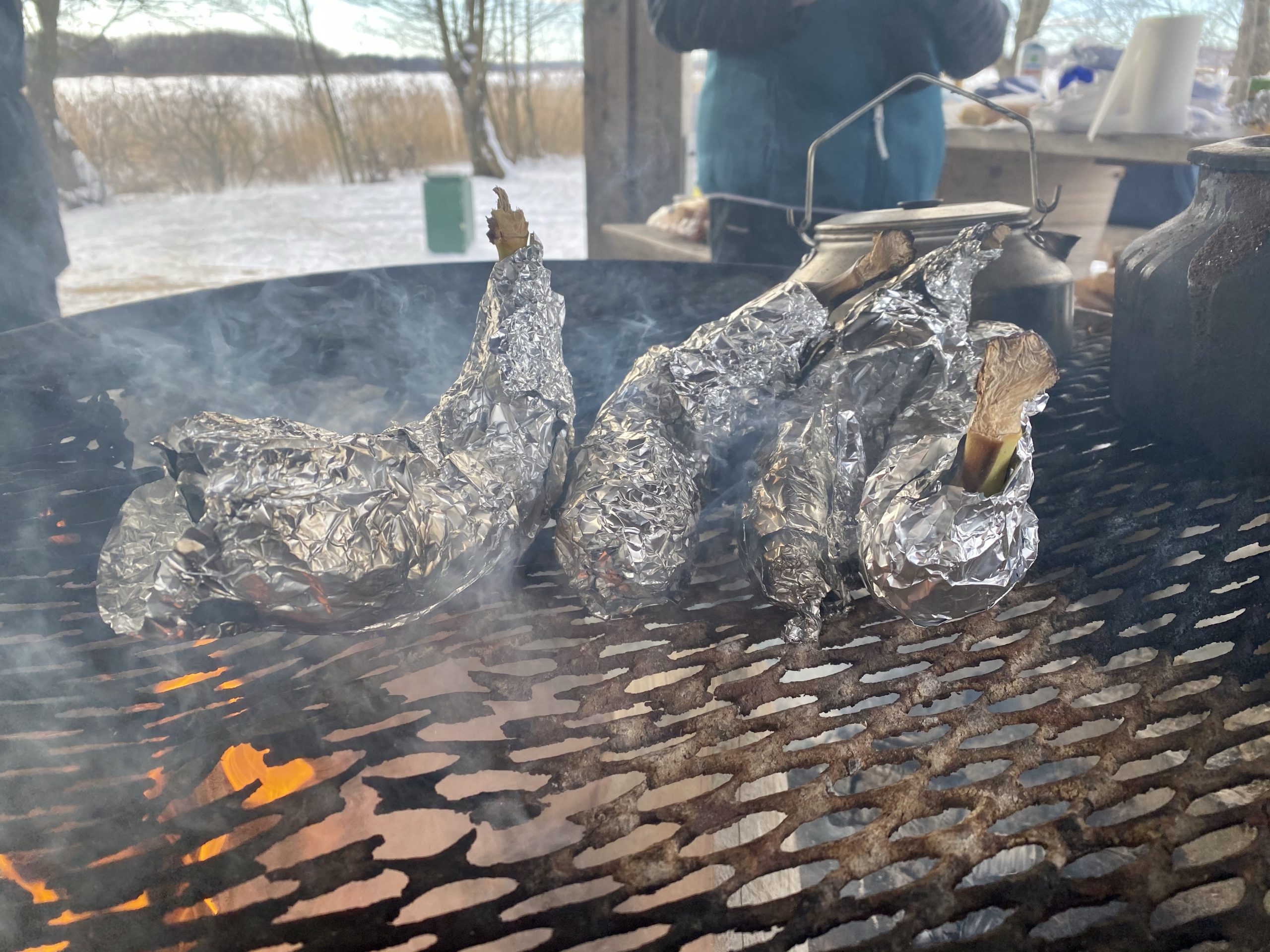 Kaffet kokades på elden och så fick vi Hajkbanan till efterrätt. Det mumsades rulltårta för glatta livet också. Så gott allting!