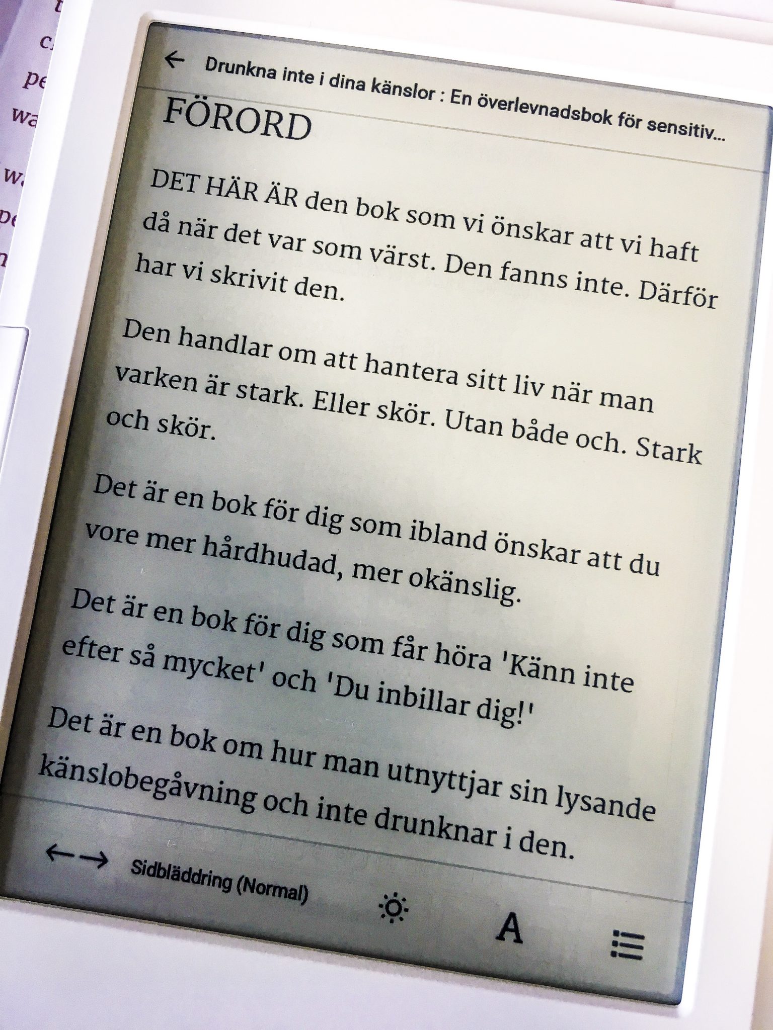 Ser ni vad jag läser? Den heter ”Drunkna inte i dina känslor” och jag börjar tro att den är skriven BARA för mig alltså. Mer ”spot on” har aldrig något varit någonsin. Ja sitter och hummar nickande och är i chock över hur rätt en bok kan träffa! Är du en HSP (Highly sensitive person) människa så måste Du läsa den här!