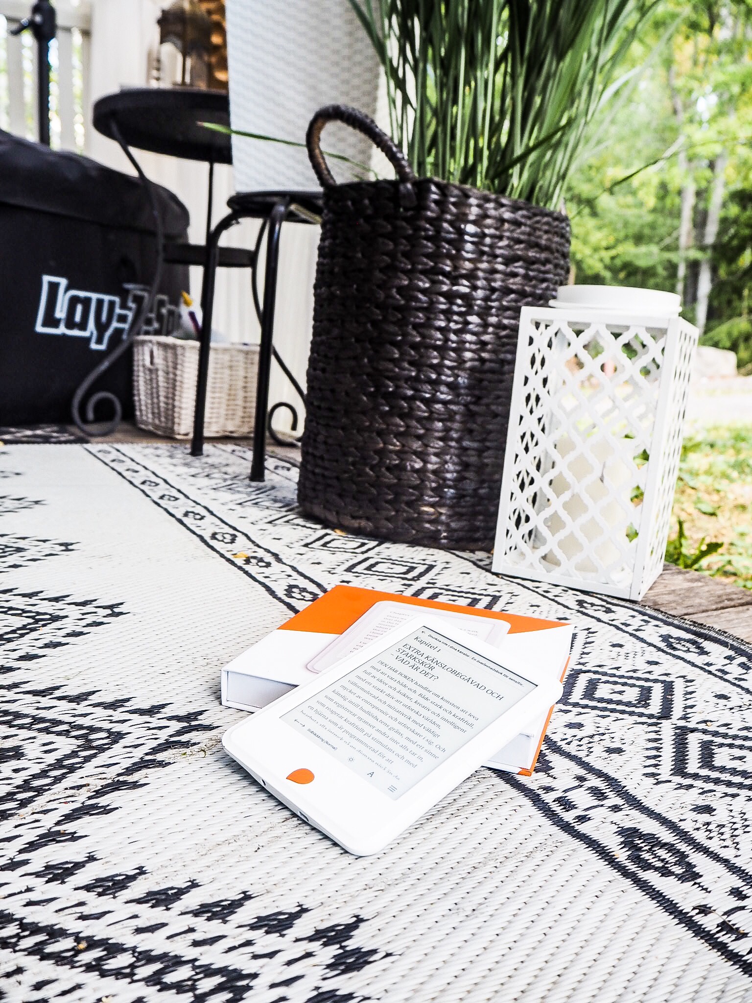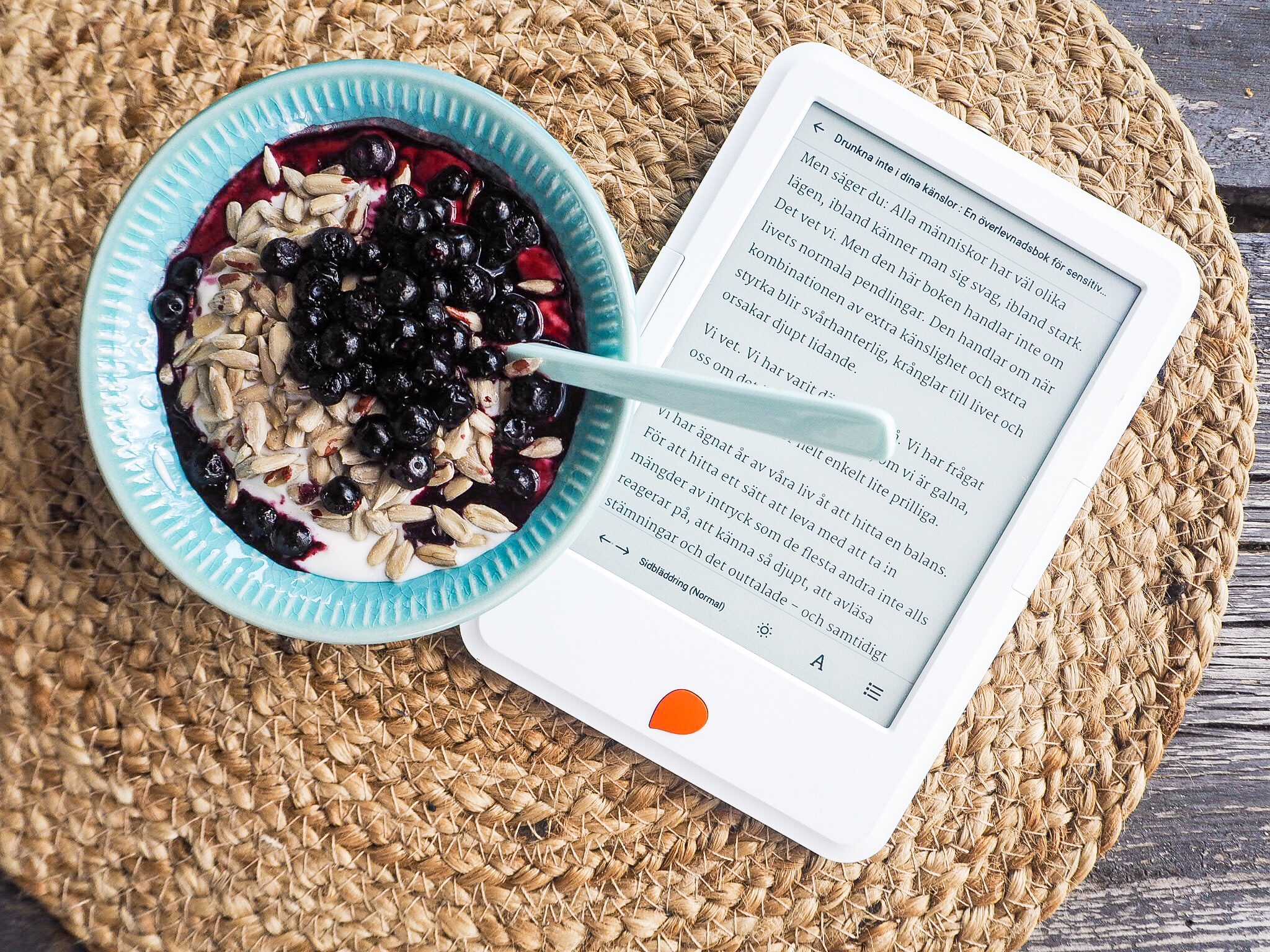 Tony LÄSER ju böcker, alltså vanliga böcker. Jag har höjt lite på ögonbrynen och tänkt att vad krångligt och bökigt när man kan lyssna. Men nu förstår jag honom, det är supermysigt att läsa. Och med den här läsplattan så kan man ju ha med sig 4000 böcker liksom…..väger ändå bara 200 gram!