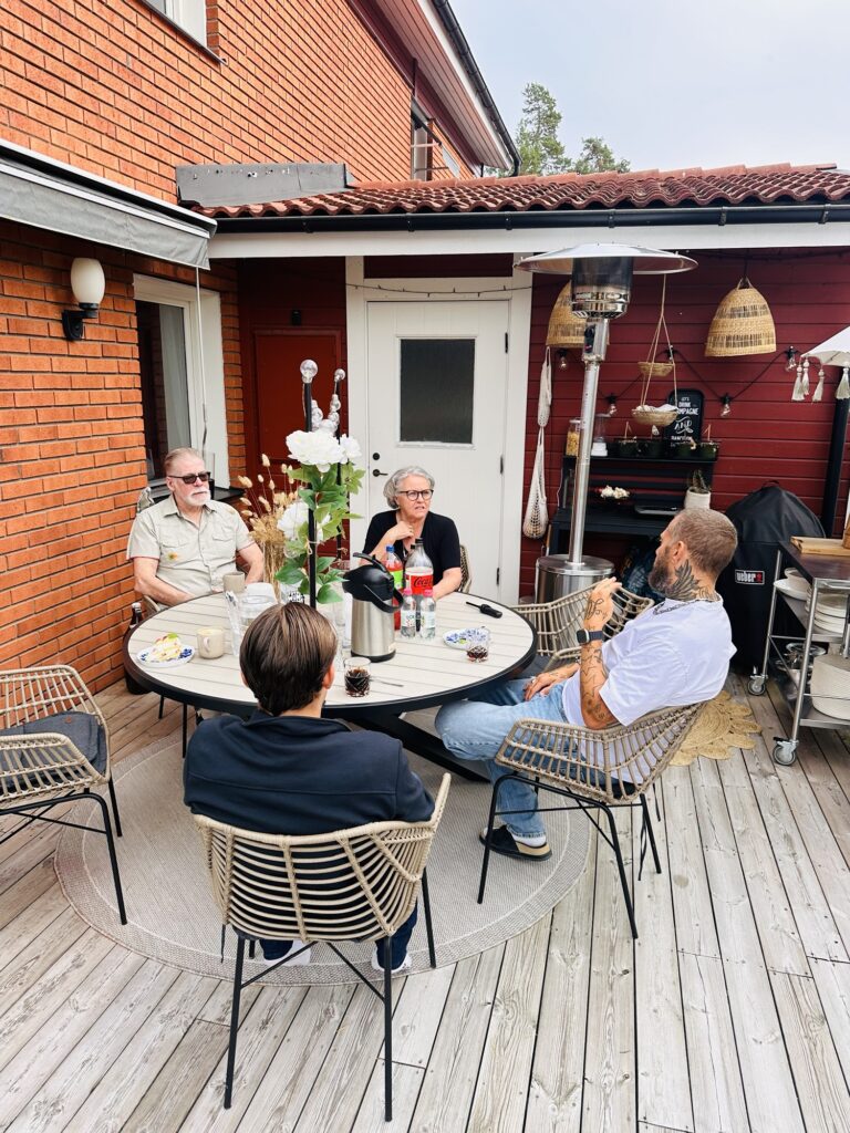 Födelsedagsfika här hemma, blev bara ett litet firande i Söndags med tårta och lite goda kakor. Gjorde min jordgubbstårta (<klicka) som är sååå god! På kvällen dök ”Mellan” upp också så vi käkade middag tillsammans. Så mysigt!