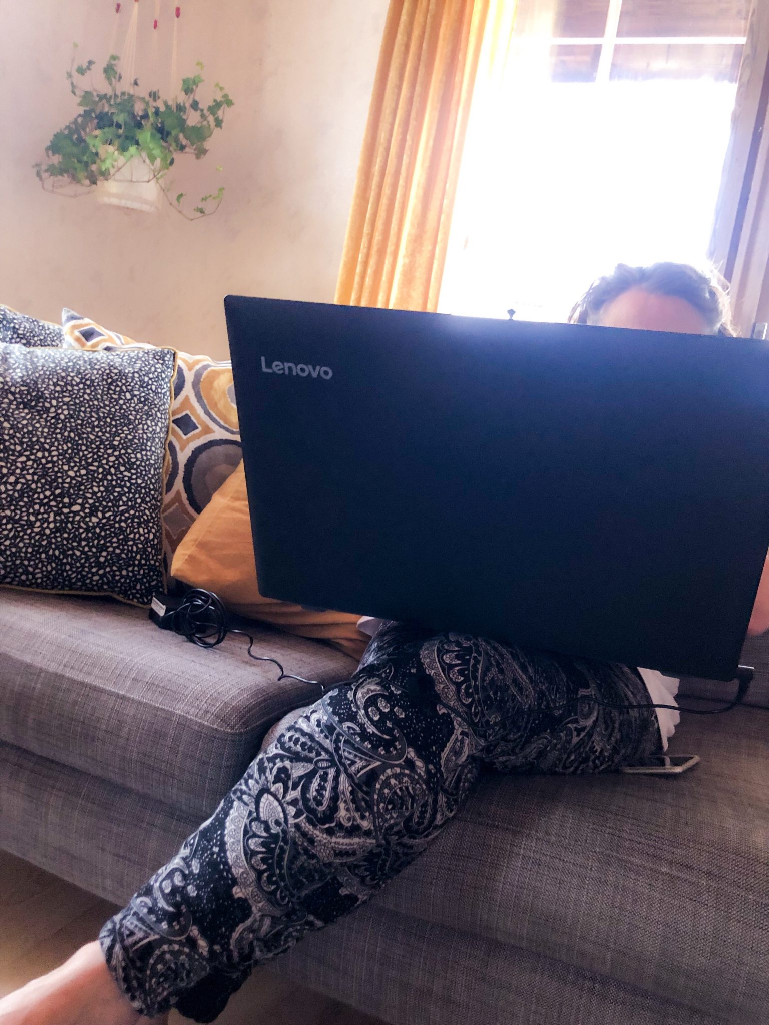 Apropå mamsen! Kolla in så stolt hon är över sin nya laptop med extra stor skärm. Haha… Hon syns ju inte bakom skärmen ens. Mumintrollet försvann alldeles där bakom.
