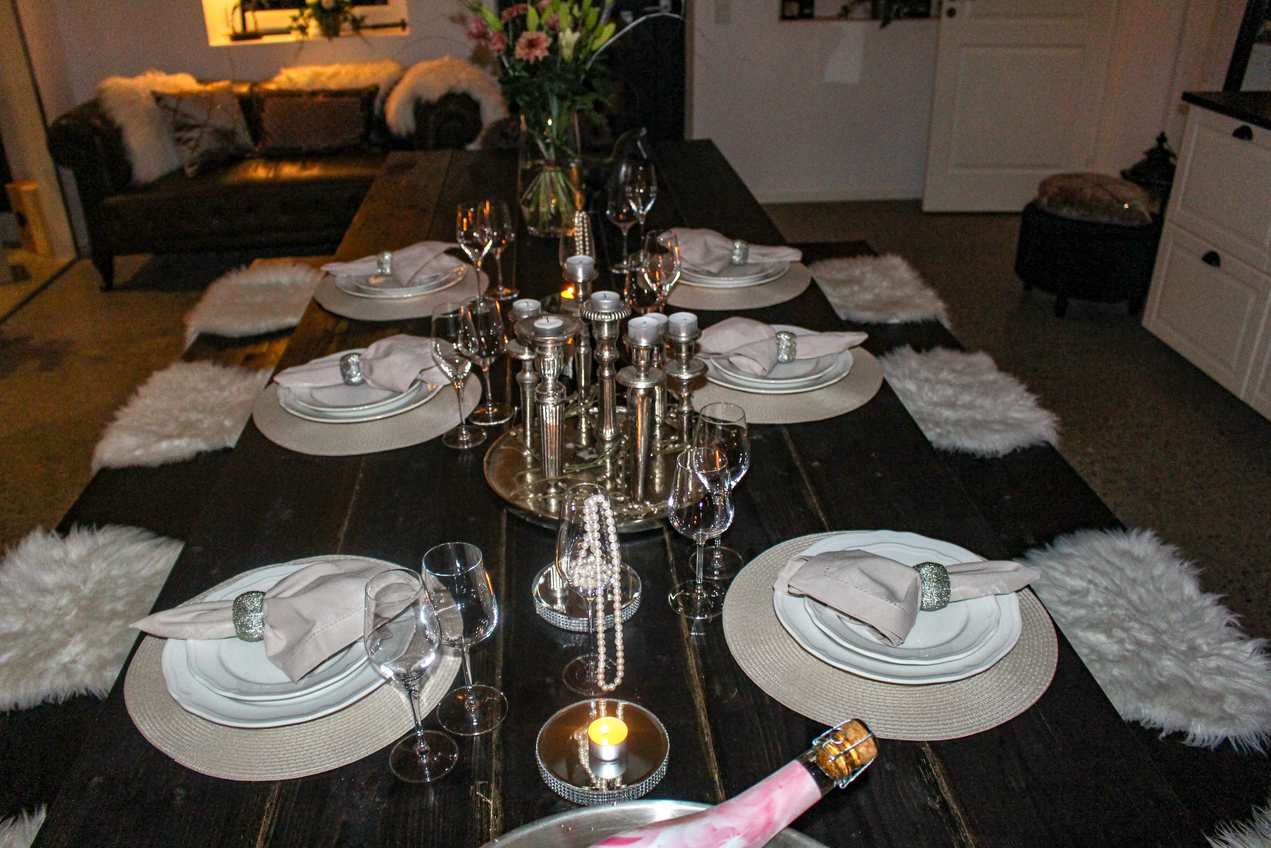 Intill champagnerummet hade Nilla dukat så himla fint. Här satt vi sedan och njöt av vår middag.