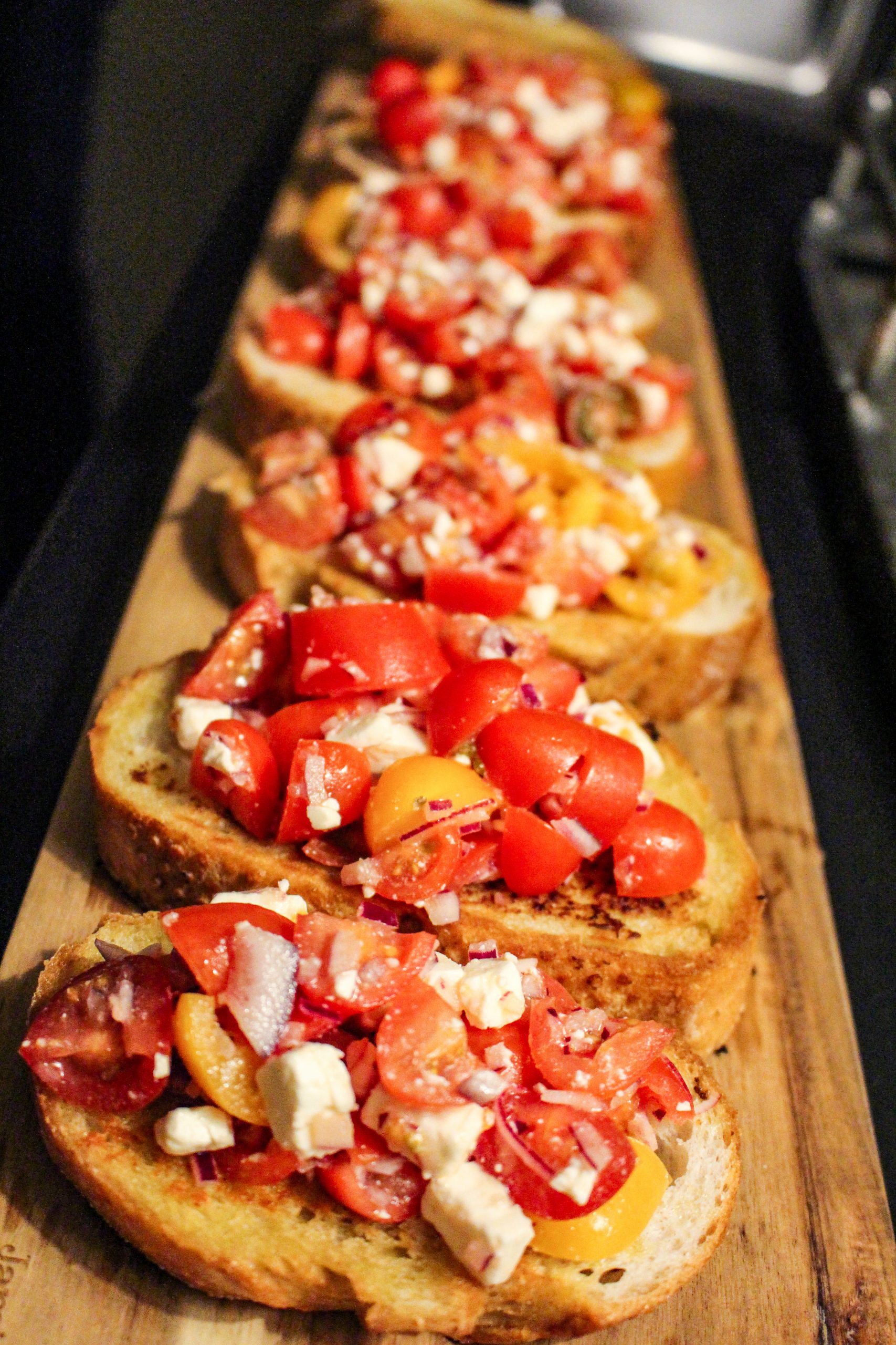 Vi hjälptes åt att laga maten för kvällen som blev Bruschetta till förrätt. Prosciuttoinlindad kycklingfile i galet god sås, rotfrukter i ugn och grönsallad till varmrätt. Till efterrätt blev det cheesecake i glas. Dessvärre kom jag ihåg idag att jag glömde riva i citron i själva cheesecakesmeten (jag åt en annan efterrätt)…. haha…. jaja. Du ska få recept på den sen i alla fall.
