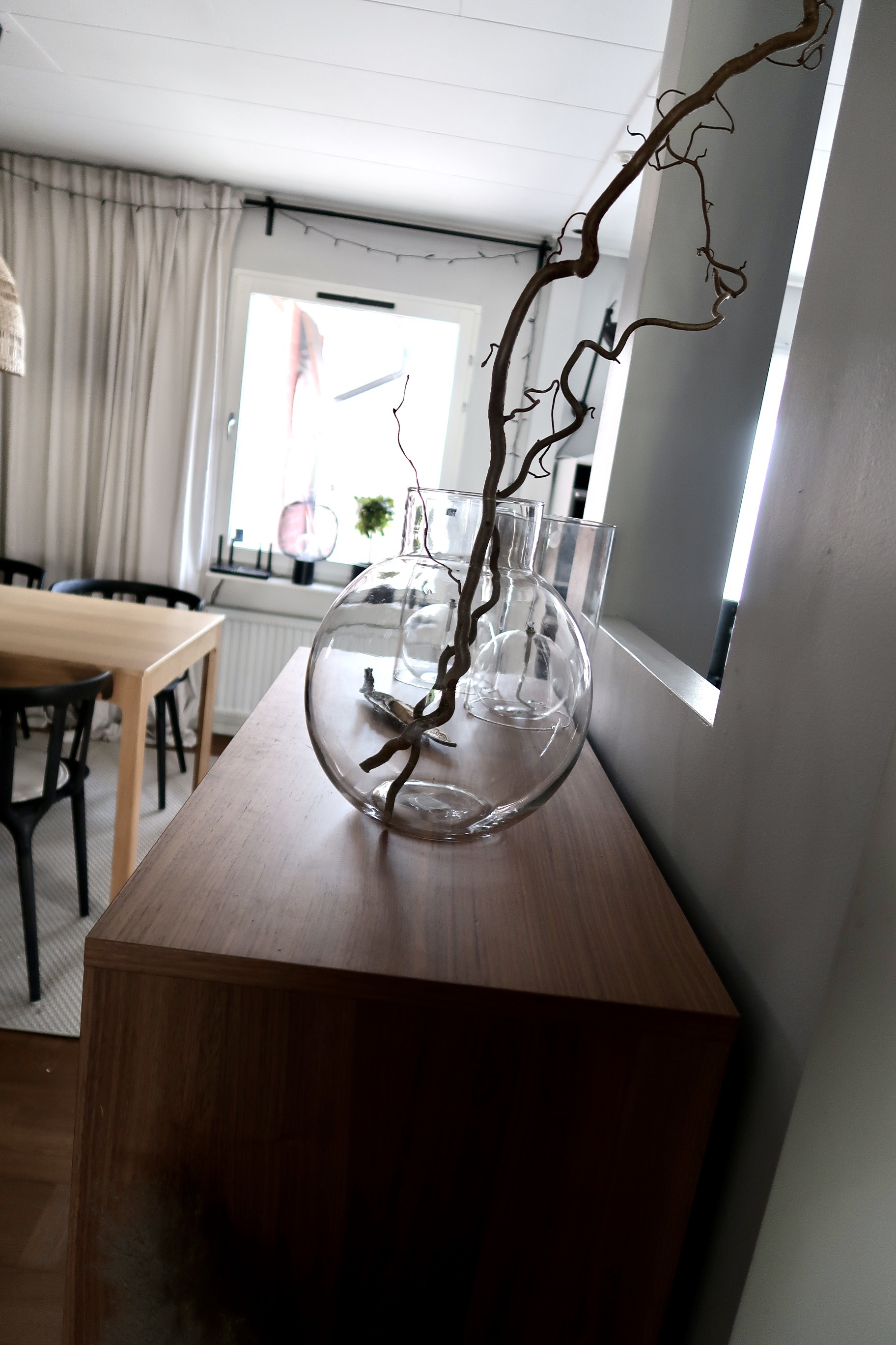 Här hemma har det i alla fall skett en del förändringar. Träet har fått flytta in hos oss och jisses vilken harmoni det blev medsamma. Det trodde jag inte. Ett nytt skåp som sväljer massor med saker som förut stått framme i två öppna hyllor. Ett tips om du tycker att ditt hem känns rörigt är att köpa ett skåp som kan förvara.