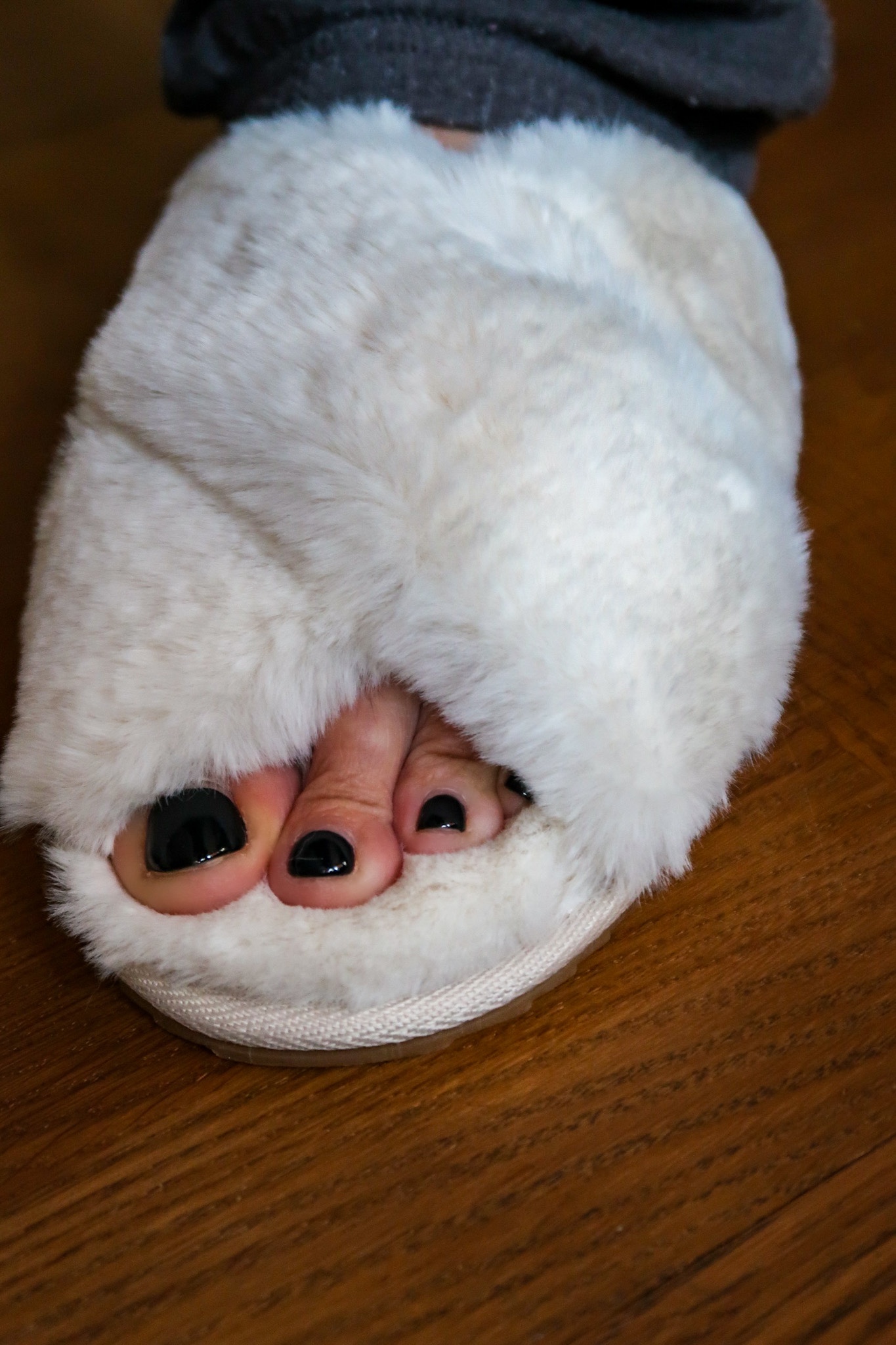 Sist men inte minst, dessa gaaaaalet härliga lurviga mjuka >>tofflor<<. Nej men hörni, jag kommer leva i dessa. De har en ordentlig sula också så man kan snabbt gå till brevlådan i dom också. Men huuuuur underbara? Älskar! Finns i rosa och svart också. Kanske ska beställa fler för dom var inte dyra.