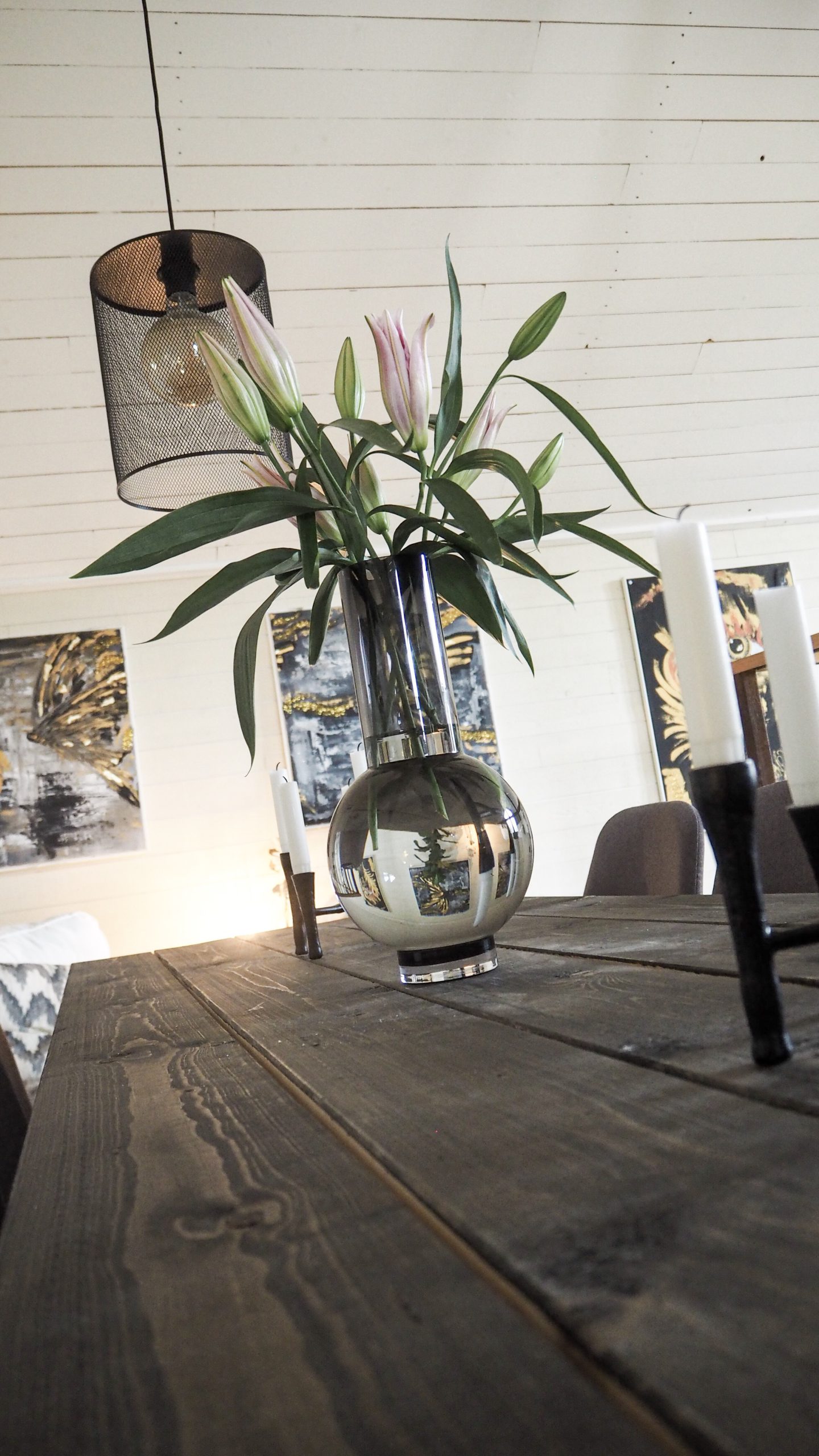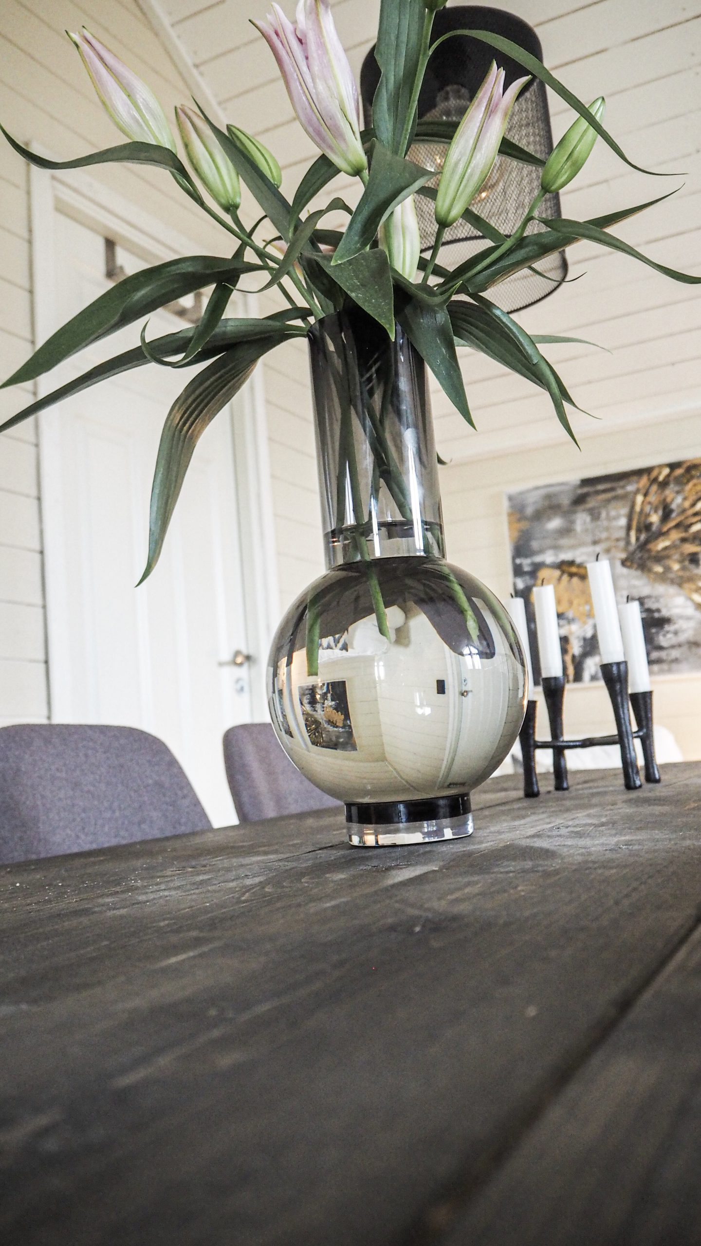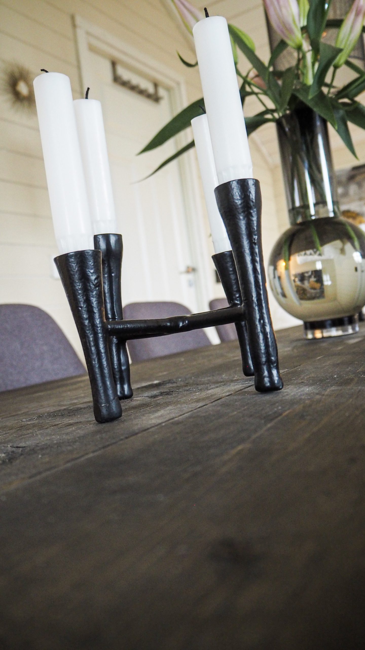 Glasvas och 2 ljusstakar i smide. Ljusstakarna hittade jag inte på deras sida dock. Jag trivs så att sitta på vårt loft.
