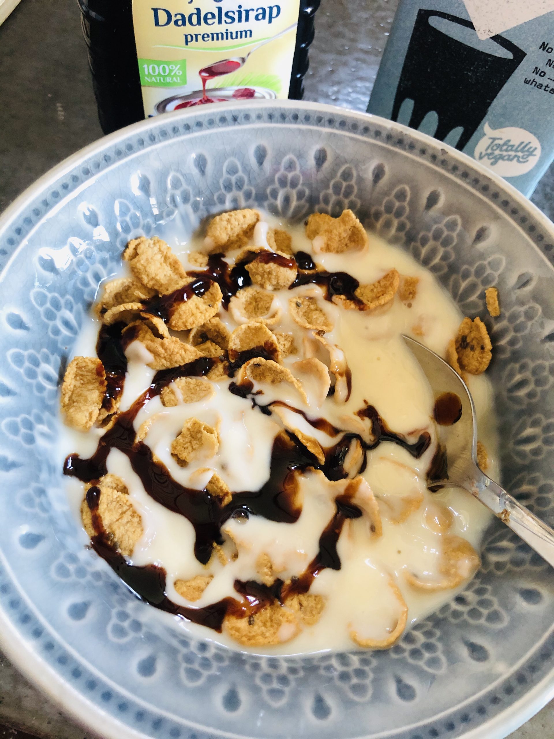Har just satt i mig den här tallriken med något som är såååå gott. Havreyoghurt, linsflingor och dadelsirap. Ämen jag svimmaaaaaar så gott det är.