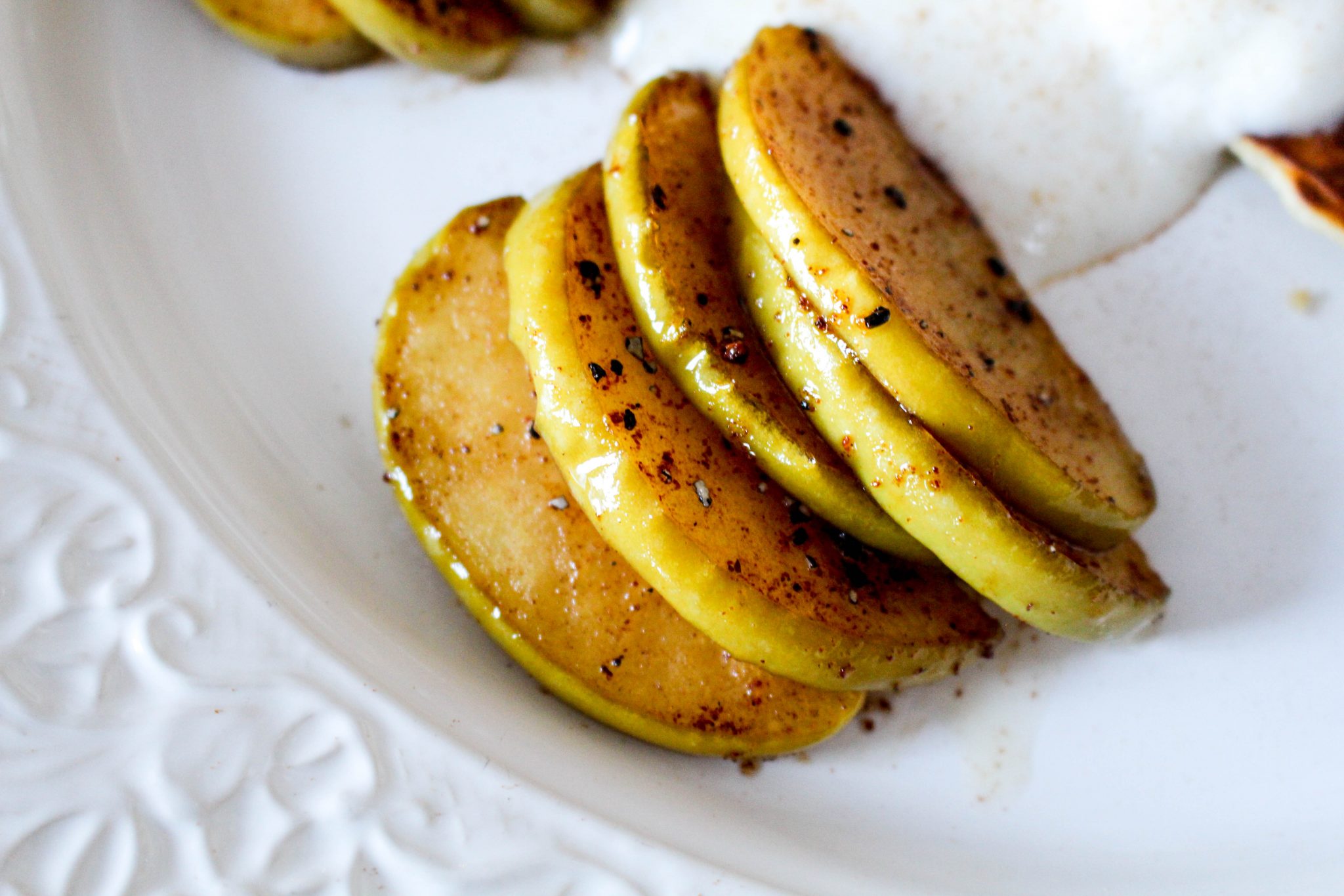 Stek äpplena i kokosolja, kanel, malen kardemumma och lite honung. Sååå gott!