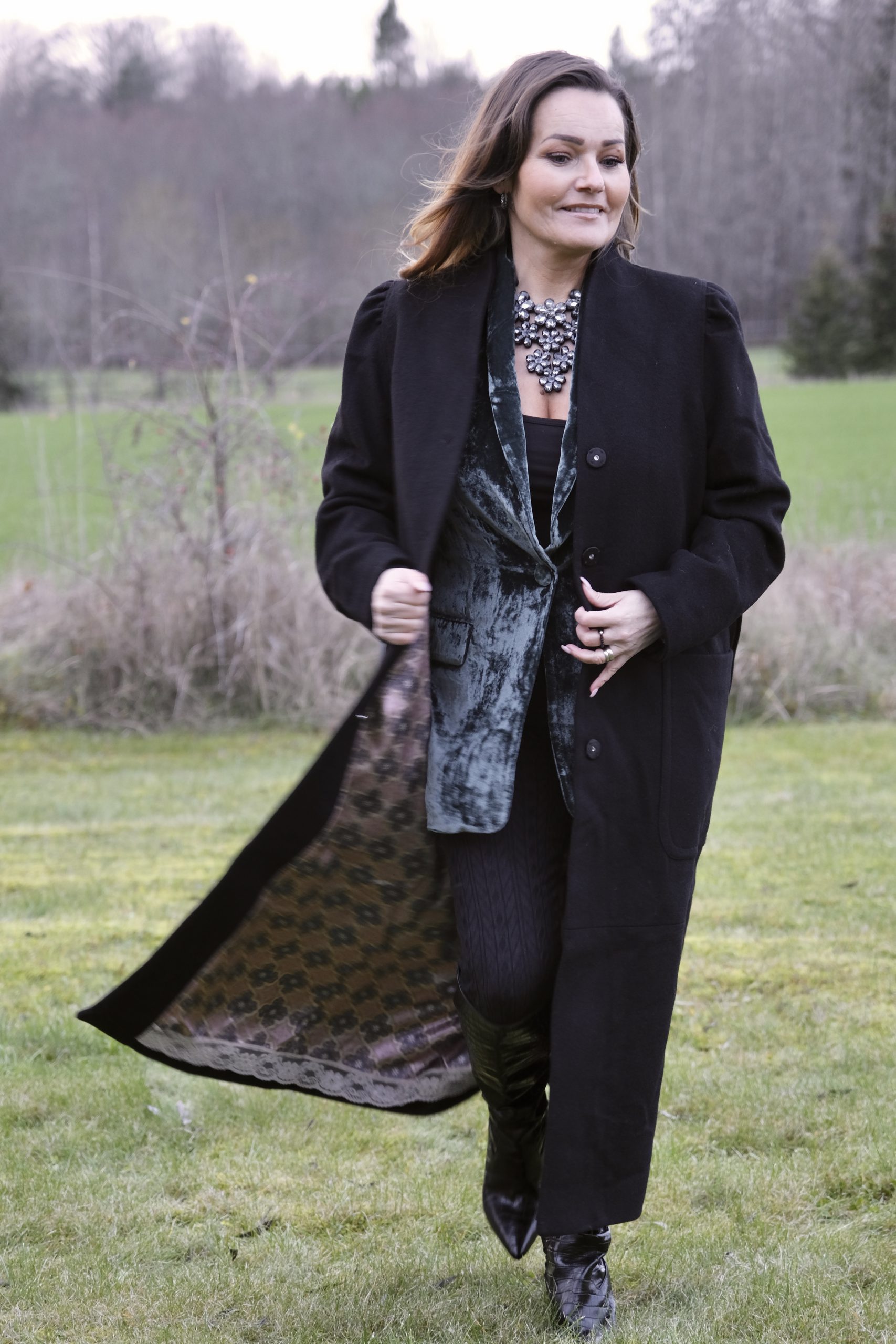 Den galet snygga kavajen under kappan är den >>HÄR<< (Allison Jacket). Nyårsoutfiten, jobbkavajen för fredagar, festkavaj, kavaj att använda som ”jacka” i vår med en stor scarf. Nej men den är så snygg så jag vet inte vad. Den här kommer användas frenetiskt! Till kavajen har jag de skönaste leggingsen jag haft, en liten söt resår i midjan och så mjuka och sköna. Känns också varma. Kenzie leggings >>HÄR<< (klickbar länk).