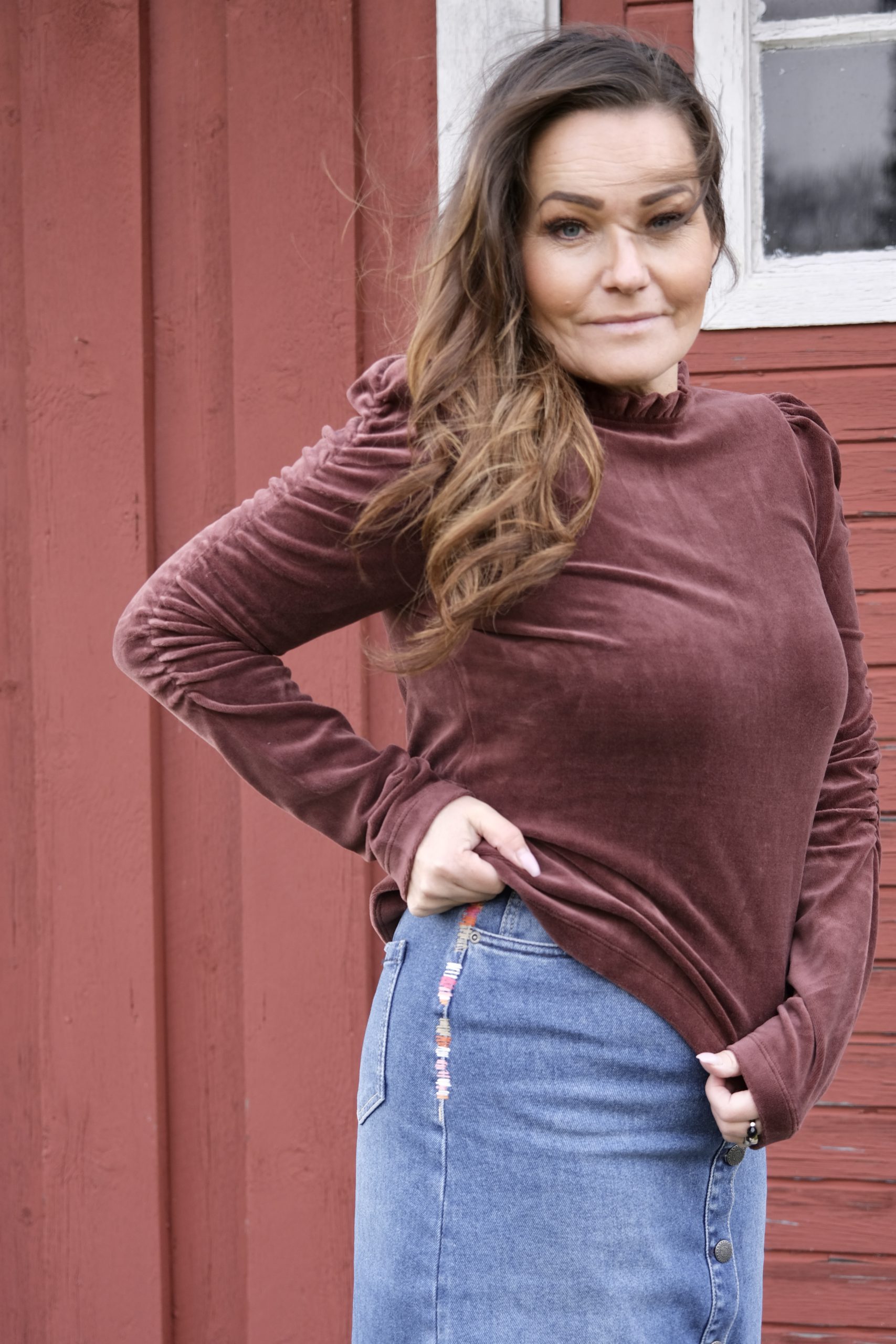 Här har du slutligen den skönaste toppen jag ägt tror jag….och hur fin är den inte? Finns i flera olika färger så denna måste jag definitivt beställa i fler färger. Fin att ha som den är, eller under kofta eller kavaj. Älskar alla de små detaljerna på den. Den här toppen passar även perfekt till mina mysbyxor, så vill man vara lite piffigare men ändå mysigt skönt klädd så kan man kombinera dom två. Toppen (Joyce Topp) hittar du >>HÄR<< (klickbar länk).
