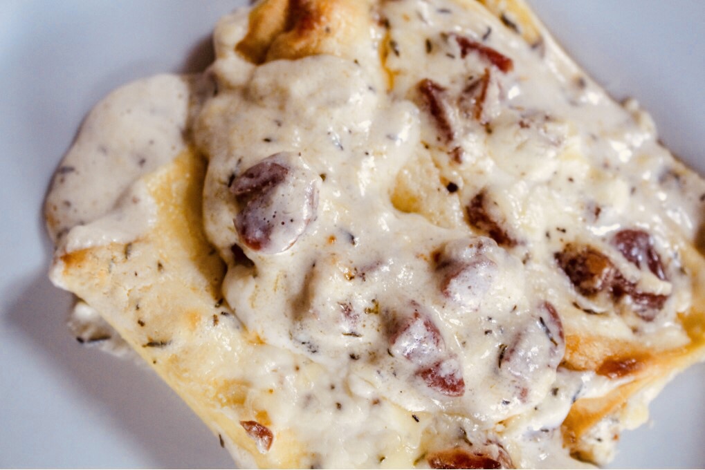 4 färska lasagneplattor (du kan också ta vanliga men då måste dom kokas innan så de blir mjuka)