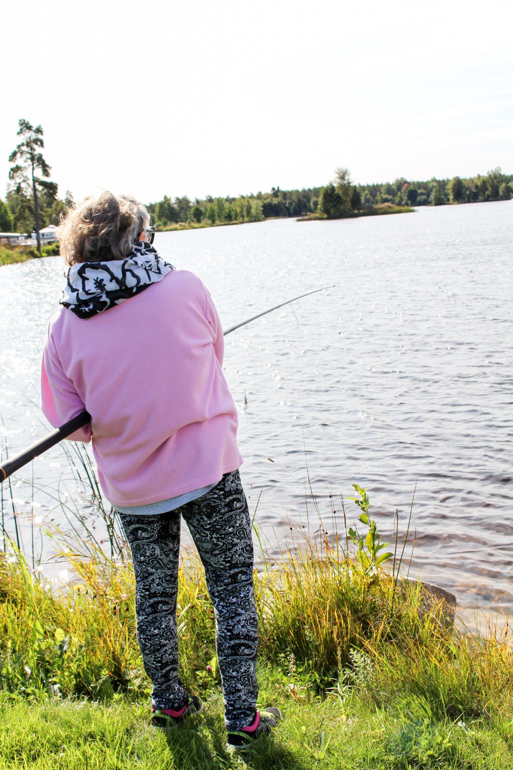 Pappa gav det några kast sen fick det vara, så är det när man fiskat en hel del i sitt liv. 🙂 Här mot mamma och pappas husvagn var det lä. SÅ otroligt skönt att bara sitta här och småprata.
