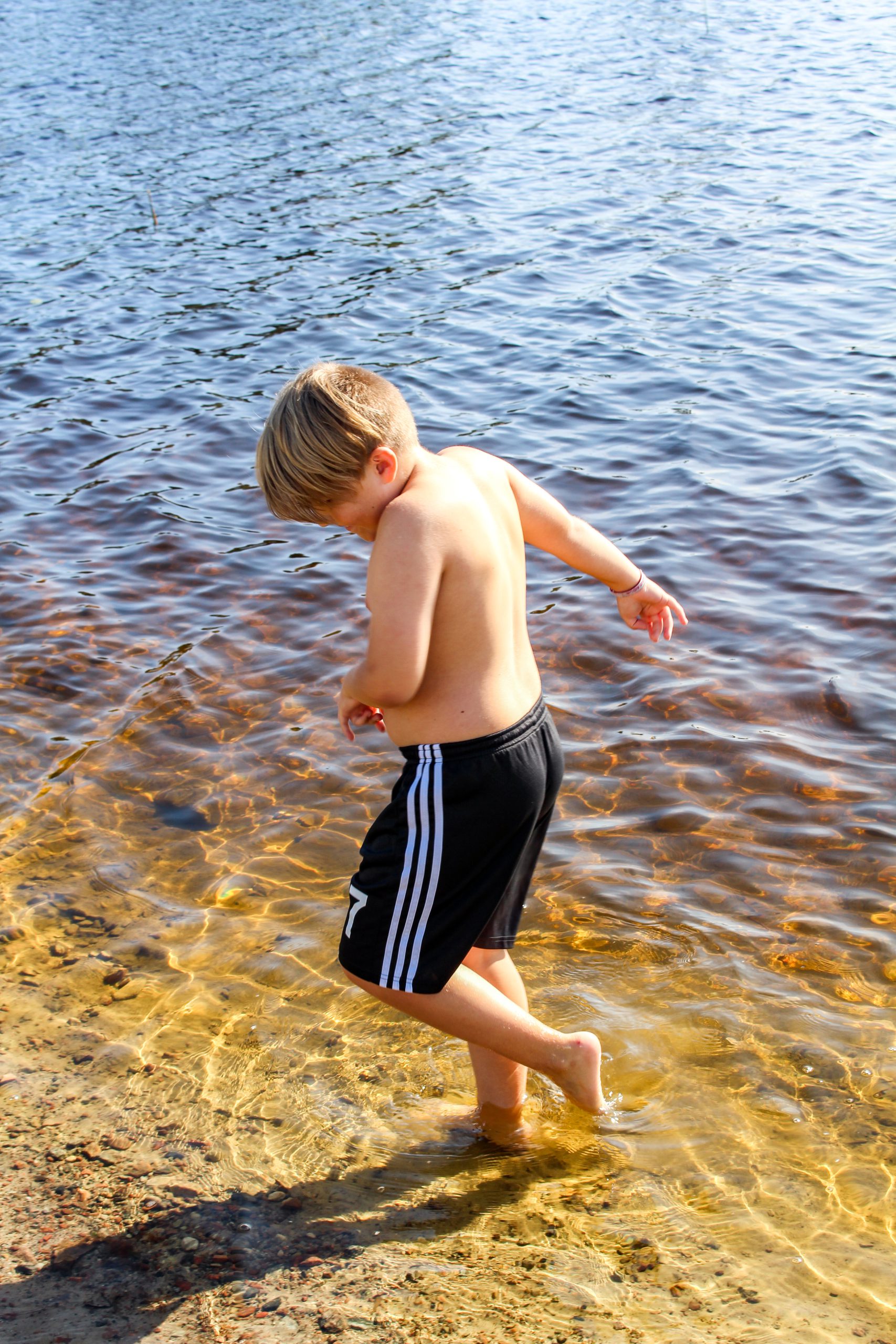 Den här lilla galningen badade idag. Vi stod beredda med handduk och sen fick han kasta sig in i varma husvagnen efteråt. Jag frös mer än han tror jag av att han badade, kändes som jag blev kall i hela magen av att bara se honom bada. Är det något jag är så är det att vara badkruka. Jag kan bada, om det är över 30 grader i vattnet och 45 grader varmt. Senast jag badade var förra sommaren den 18 juli, alltså 2018, å det tog tiiiid innan jag kom i, HÄR kan du läsa om det. Haha…