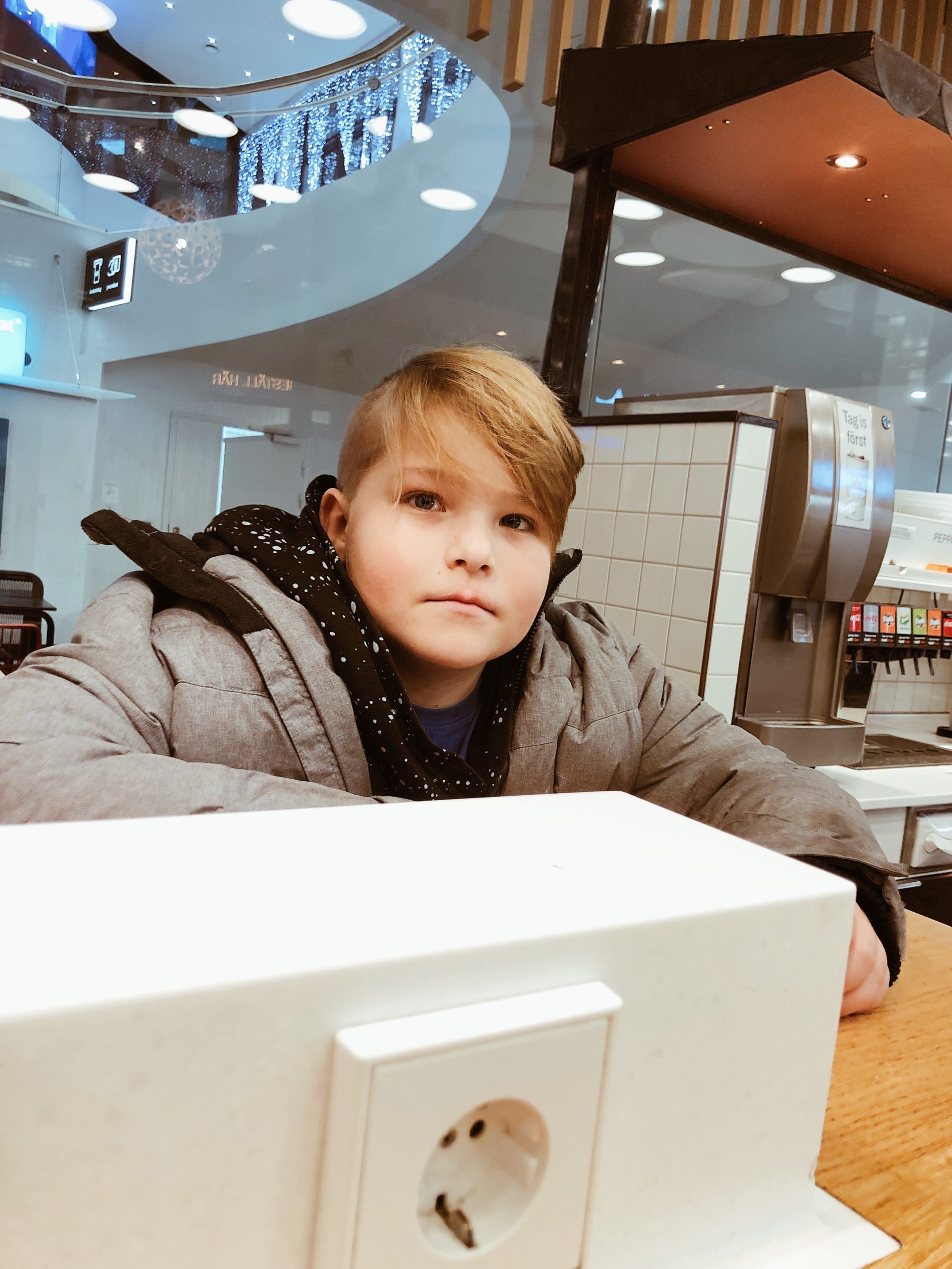 Kl 20.28 gick i alla fall mina ögon ihop av trötthet. Inga direkta mammapoäng men det blev en sen middag på Max. Fasen så dåligt samvete jag kan få av sånt.