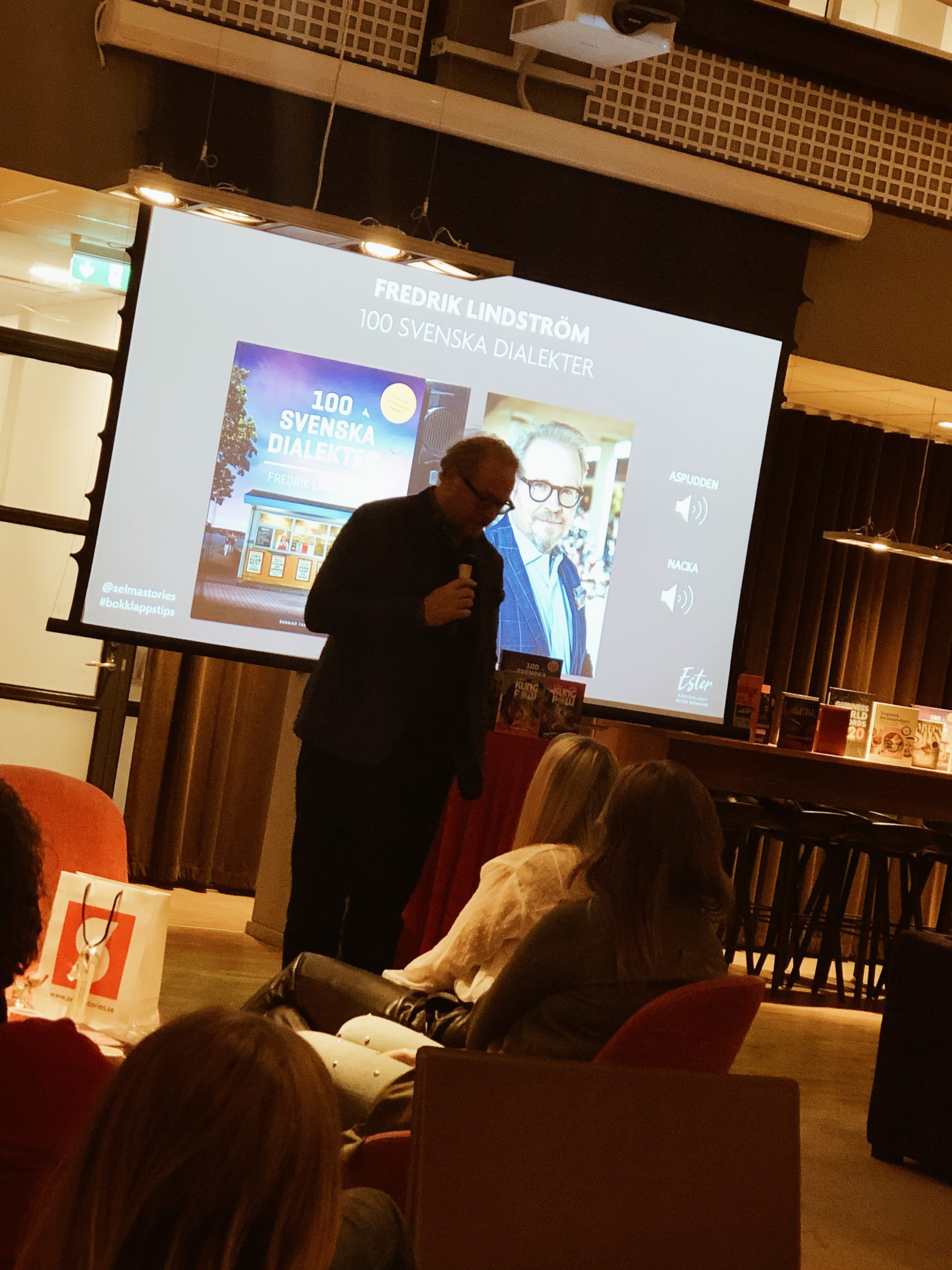 Jag hade också äran att få träffa en av de roligaste personerna i Sverige (enligt mig). Han var dessutom supertrevlig och signade boken till mig. Som vi skrattade när han berättade utdrag ur denna bok. 100 svenska dialekter. Detta är alltså i första hand en lyssningsbok, men det går också att läsa. Detta är nog en superrolig bok att få i julklapp tänker jag. Finns HÄR!