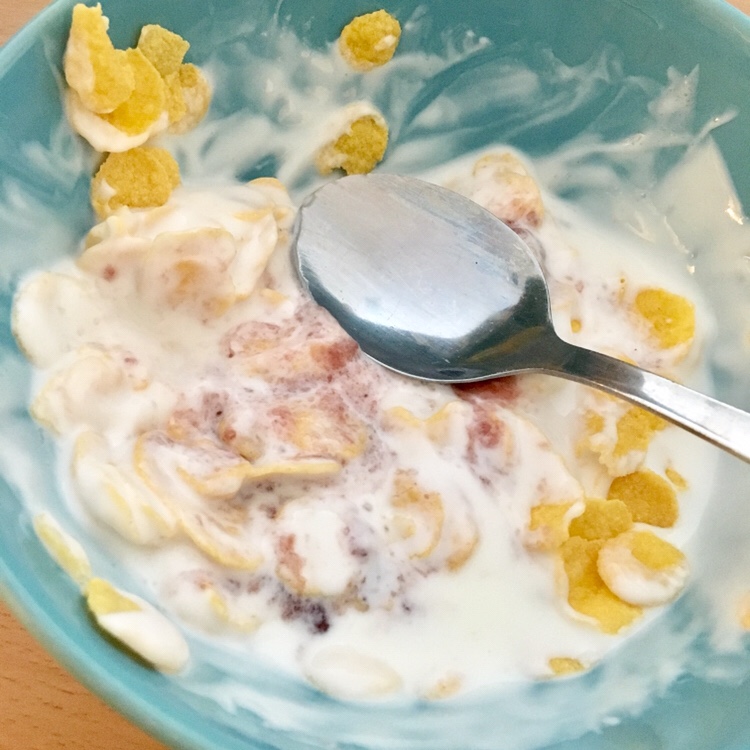 I morse njöt jag så av den här tallriken med fil, flingor och lite pannkakssylt. Haha….tills sköterskan kom in med den här tallriken istället.