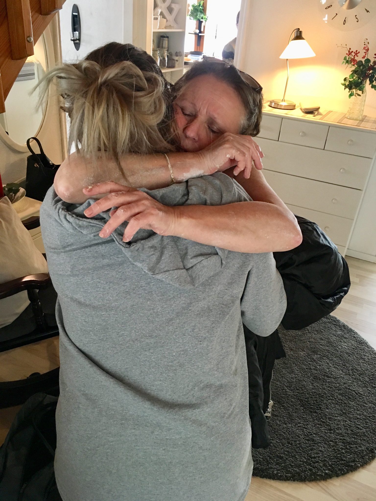 Den där stora kramen av sin mamma. Hon mitt i bakningen också….den var precis vad man behövde. Vi åkte ut hit för att inte sätta igång med alla måsten. Vi har inte ens börjat packa, tack och lov tvättat allt men inte fått ned de i resväskorna. Jag behöver ta en lugn dag idag. Vila, sova, återhämta mig.