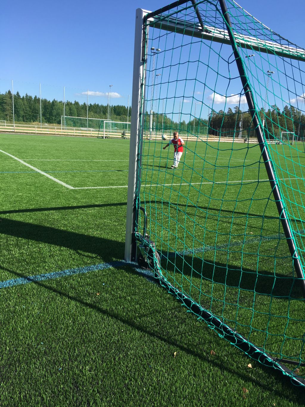 Efter stan så drog Thedde till jobbet och vi upp till fotbollsplanen. Milo fick stå och mosa lite skott igen. Jag lekte bollkalle.