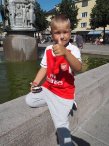 Mitt på dagen idag så blev vi hämtade av Thedde för en lunch på stan. Efter maten tog vi en glass på torget.