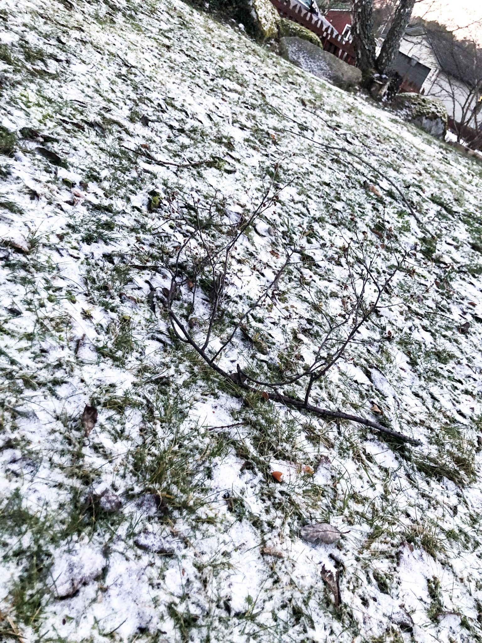 Det är mycket grenar och kvistar ute på vägarna och ute på gårdarna. På vår baksida har tujorna flugit all världens väg. T.o.m luckan till uteförrådet hade flugit upp. Det har låtit som om huset varit på väg och flyga upp i himlen alltså, så att allt rasat lite var inte alls konstigt. Förvånad över att studsmattan stod kvar.