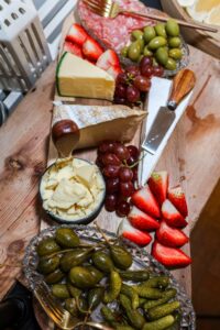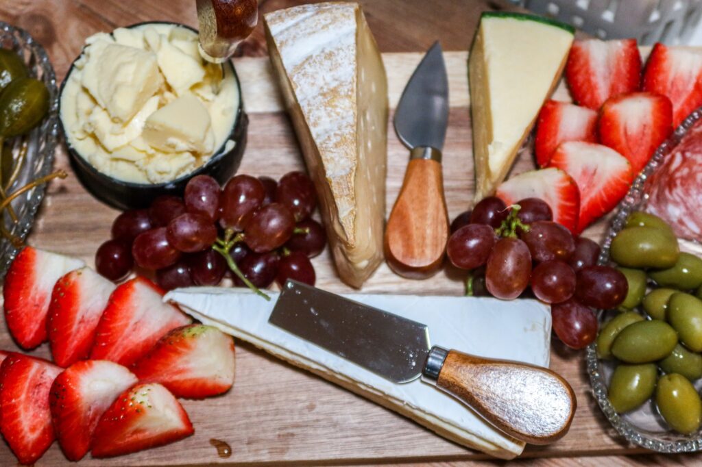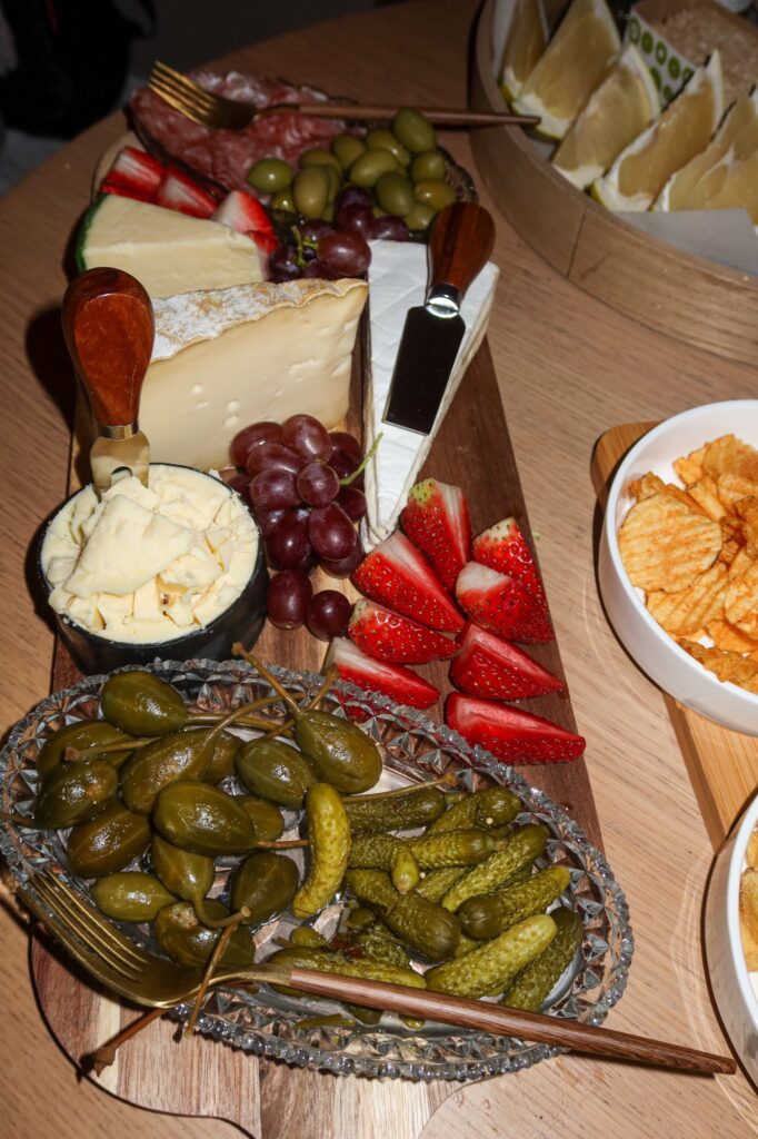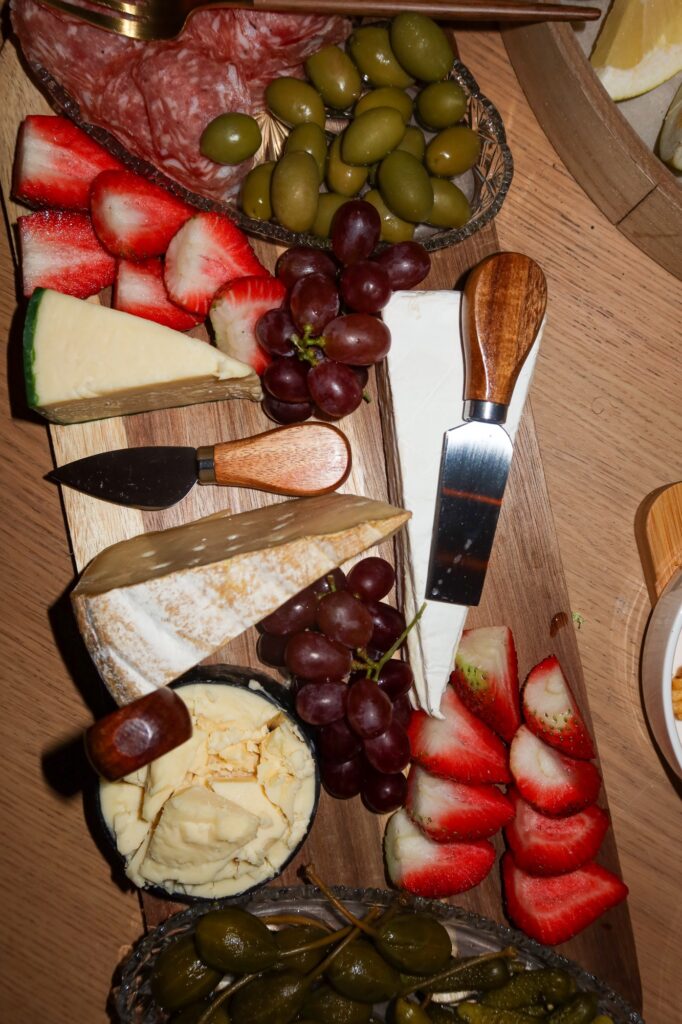 Annat gott jag gillar på ostbrickan: VINDRUVOR, GREKISKA OLIVER, JORDGUBBAR, JÄTTEKAPRIS, CORNICHONS, POMELO, GURK & MOROTSSTAVAR, TRYFFELSALAMI, KEX & BRÖD.