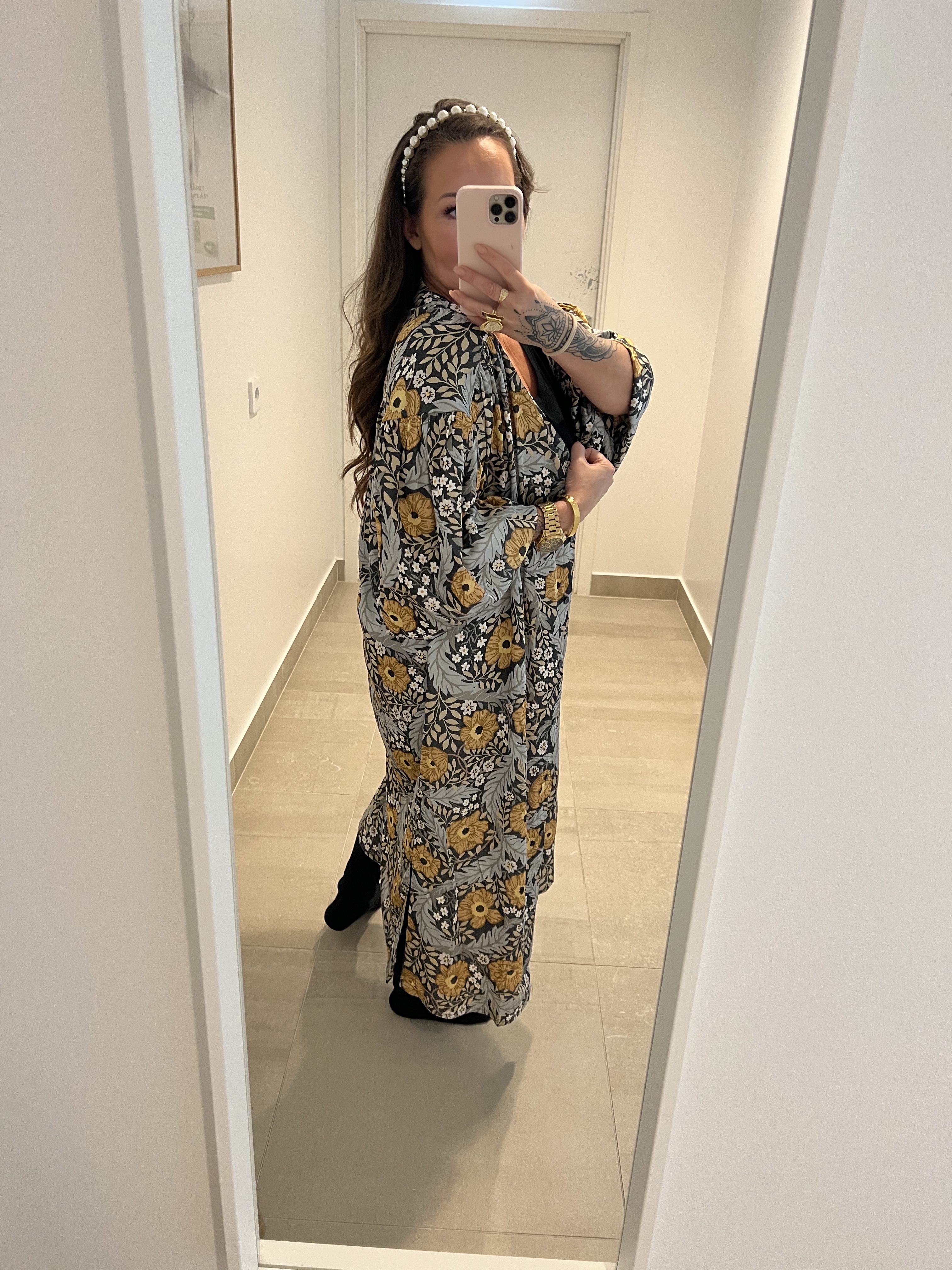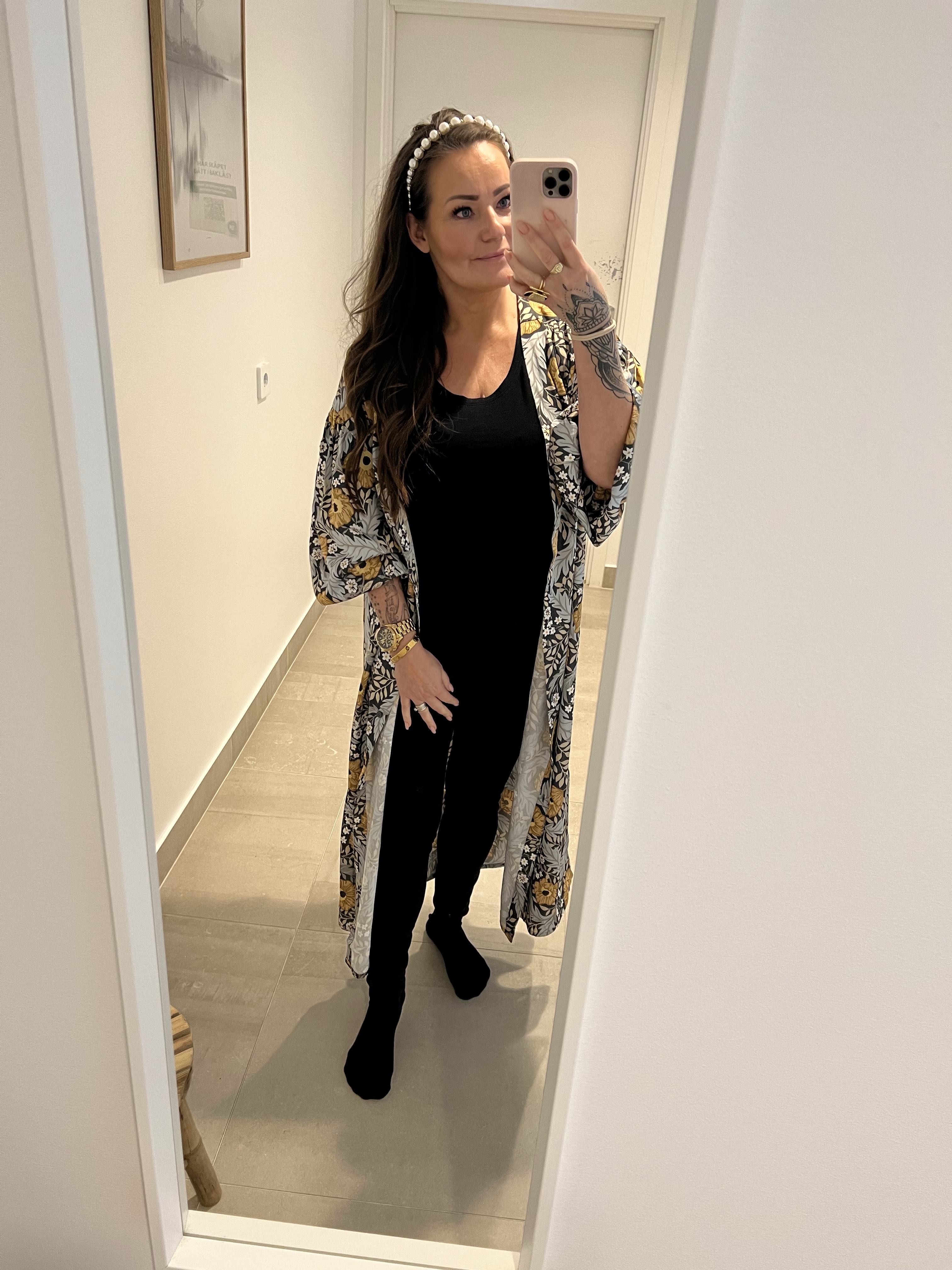 Igår var jag till Osteopaten, lyckades fota av min outfit innan jag gick in till honom. Det här är egentligen ett nattplagg men pratade med tjejen i kassan om den att jag skulle ha den som kaftan. Då sa hon att så många använder deras nattplagg till vardags. Skönt att man inte är ensam kanske? Så härligt tungt material är det på den.