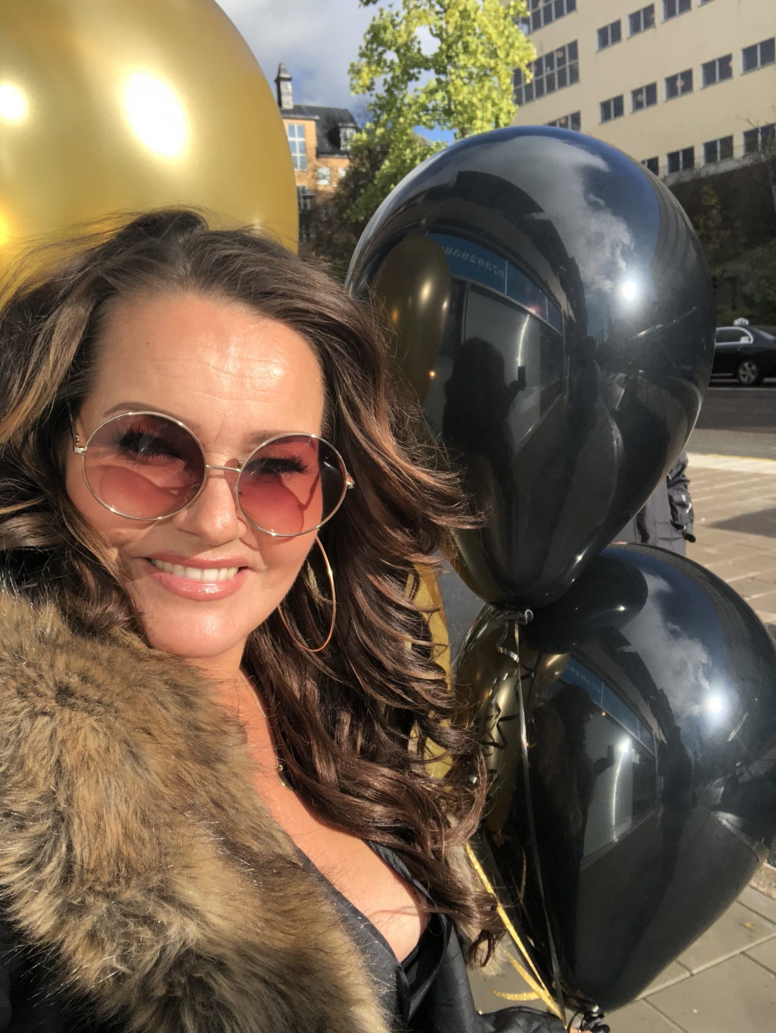 Vi köpte ballonger innan bussen skulle komma. Dessvärre small 2 redan innan vi hann in i bussen.