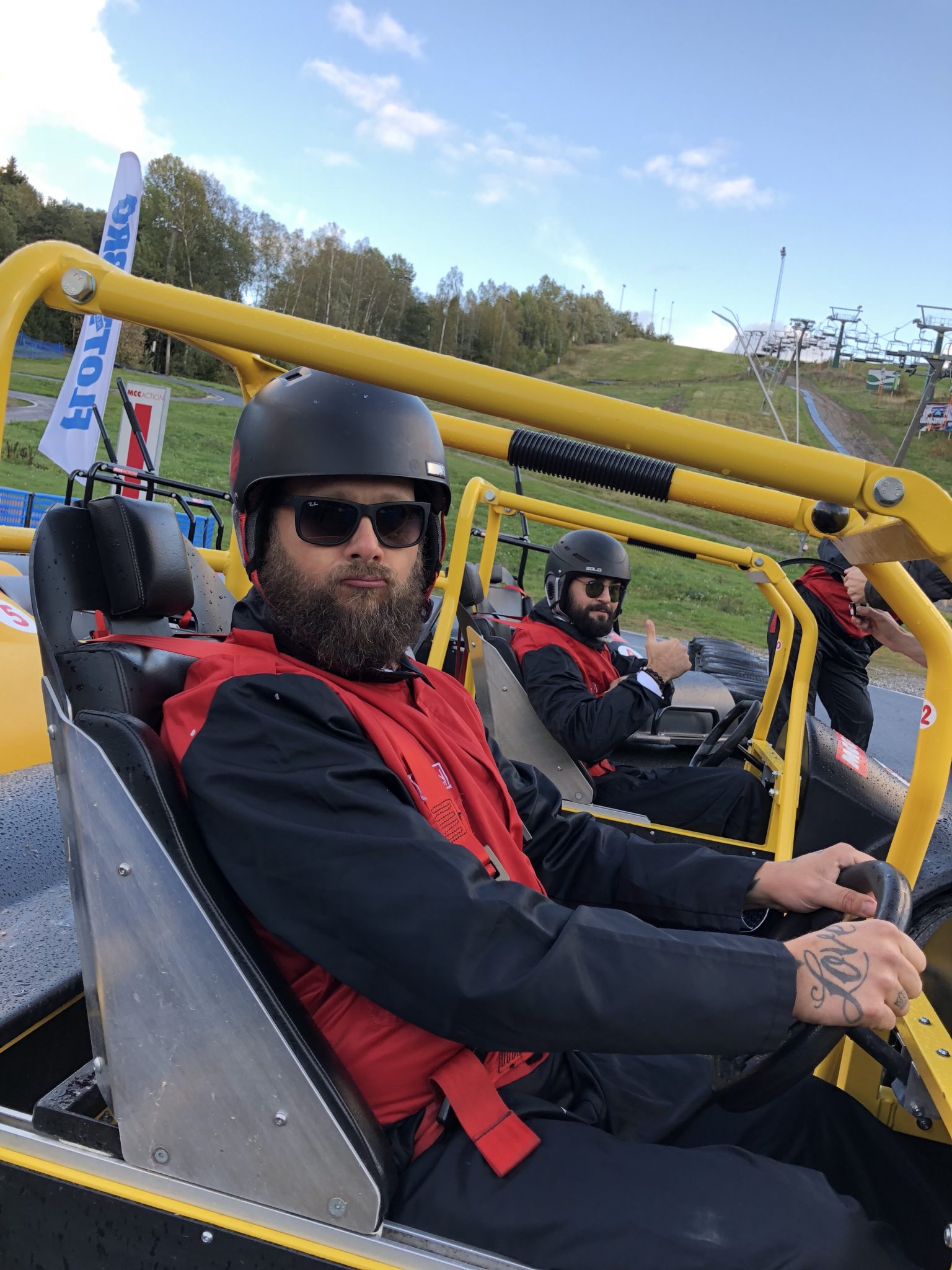 Ombytta och klara för att åka lådbilar ned för en stor skidbacke! Så mycket roligare än man trodde det skulle vara!