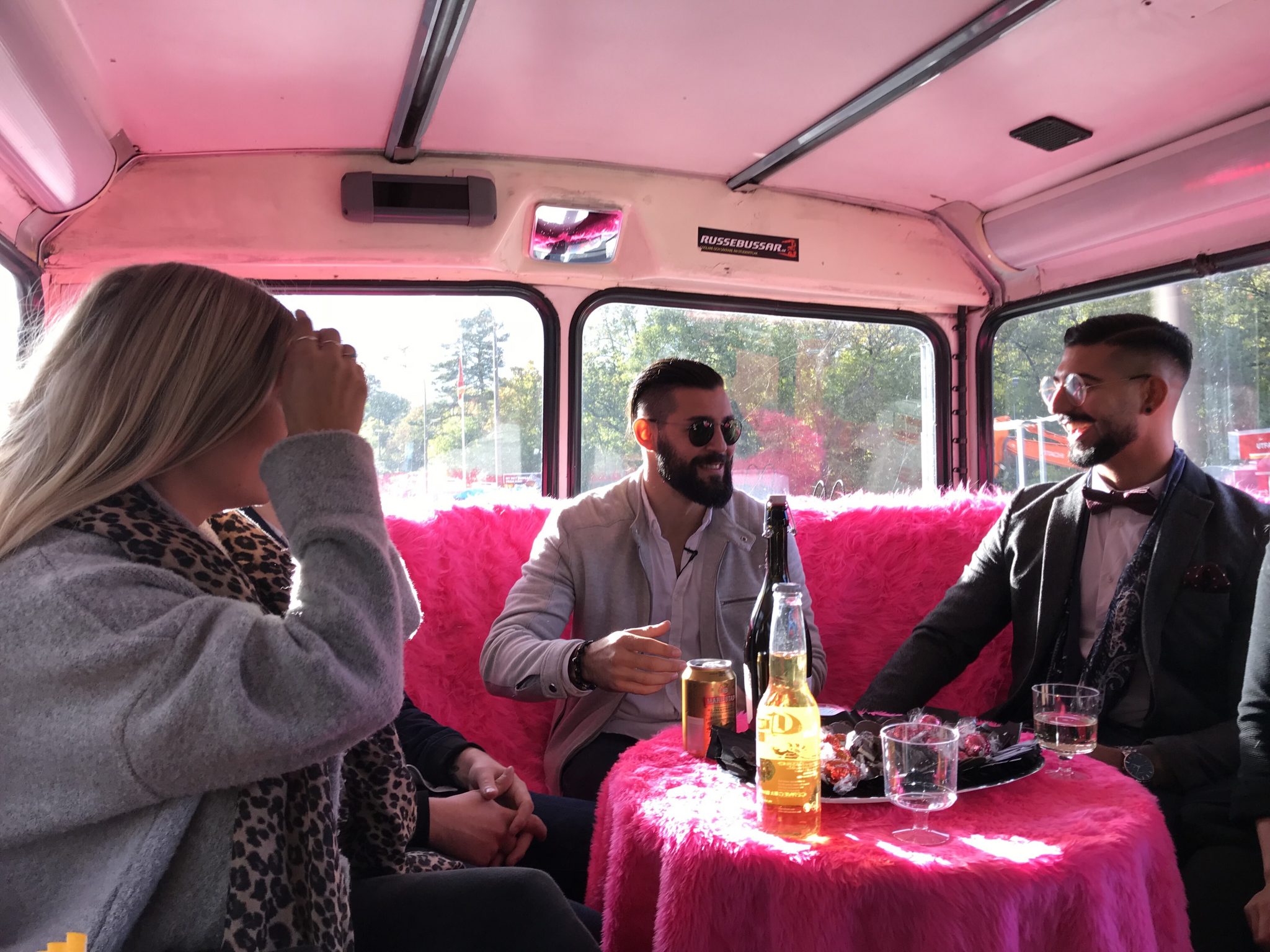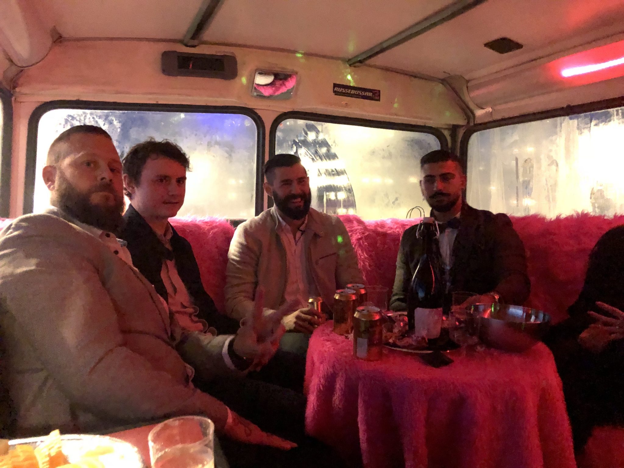 I bussen väntade snacks och lite dryck och där började firandet av Korosh. Sedan stannade vi till och hämtade upp lite folk på vägen för att åka vidare mot Flottsbro downhill cars.