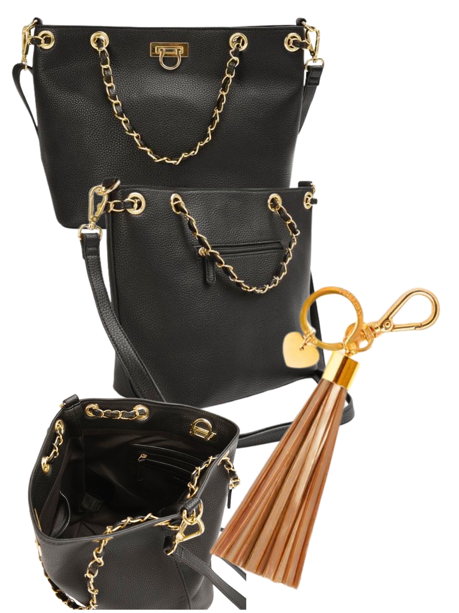 Kolla in denna svarta skönhet! Kenzie handväska. Spana in den fina bagcharmen också. Snyggt att hänga på väskan, ett riktigt lyft.